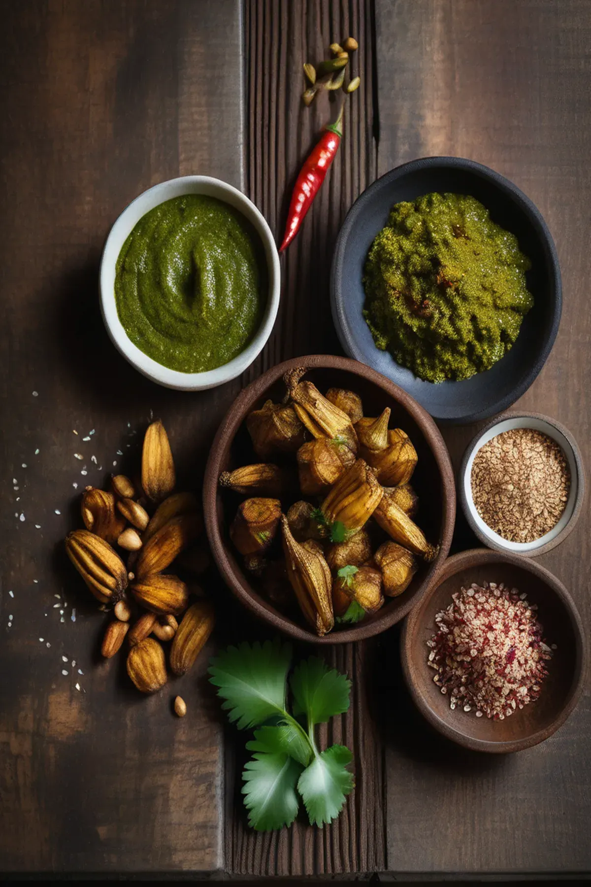 Jerusalem artichoke tuk with coriander & peanut chutney