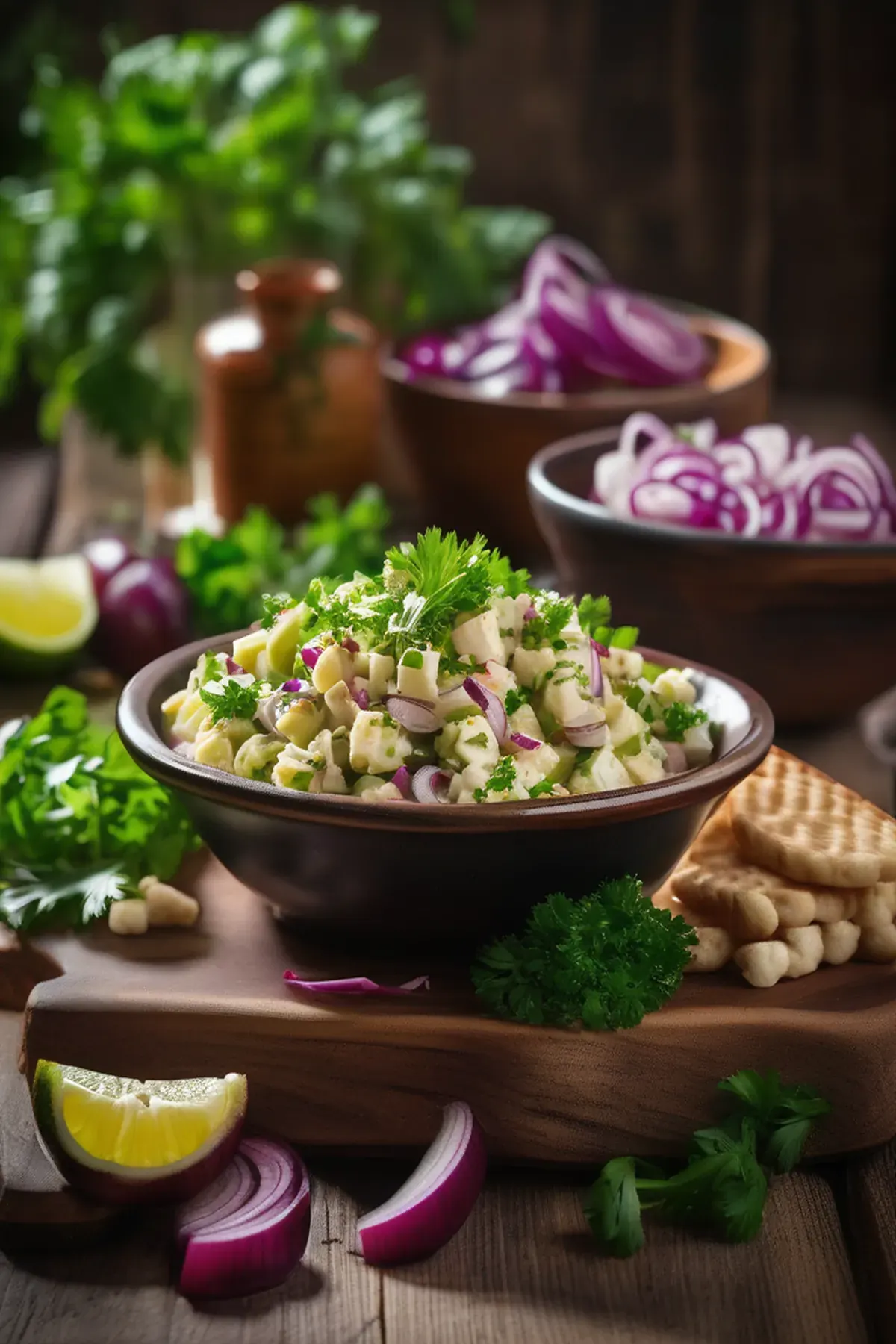 In a large bowl, combine the diced red onion, chopped parsley, lemon juice, olive oil, salt, black pepper, and minced garlic.