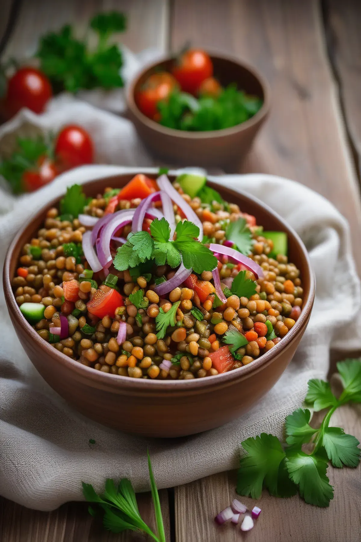 This is one of my favorite quick weeknight meals because it comes together in under an hour and costs almost nothing to make. Red lentils are packed with protein and fiber, making this salad incredibly satisfying and nourishing. The combination of fresh cucumber, tomato, and aromatic herbs like mint and cilantro creates such a vibrant, refreshing dish that feels light yet substantial. Whether you're looking for a simple lunch or a side dish to impress guests, this Lebanese classic never disappoints.