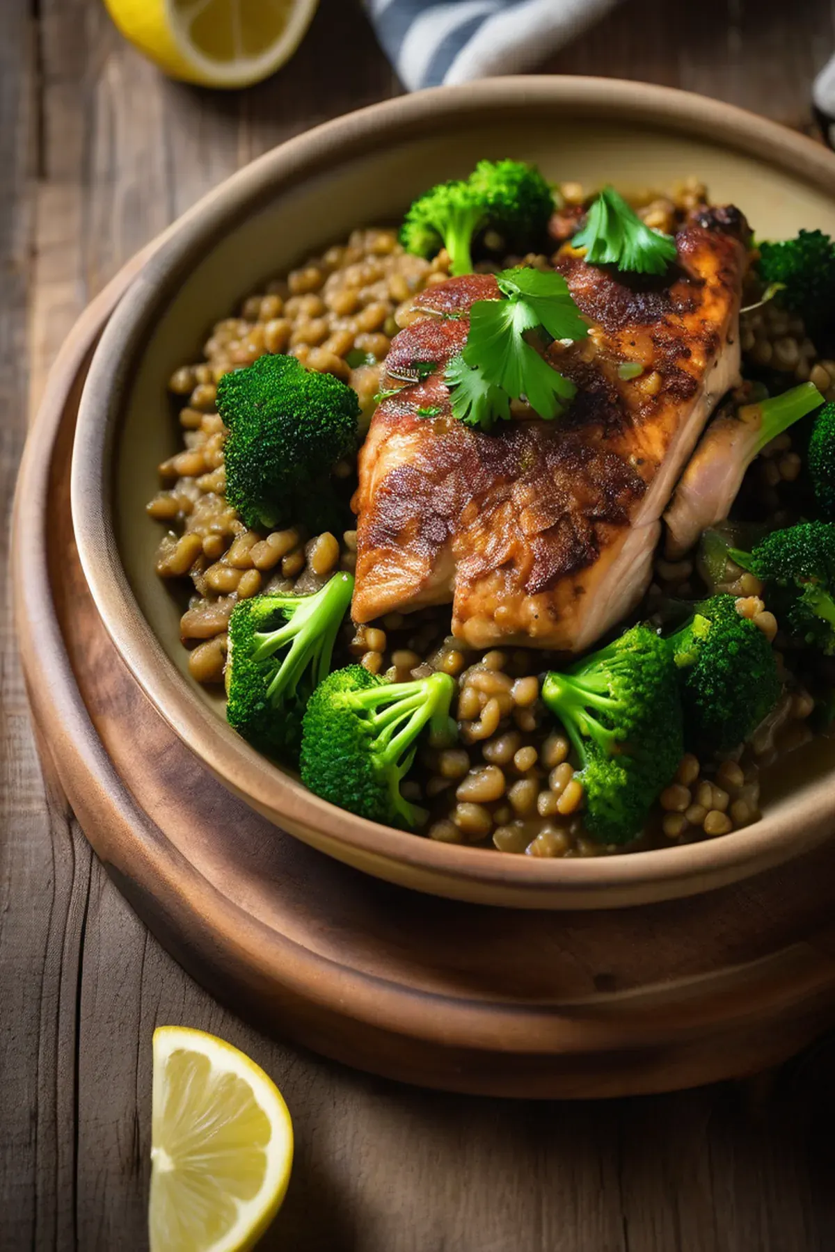 Lemony chicken lentils