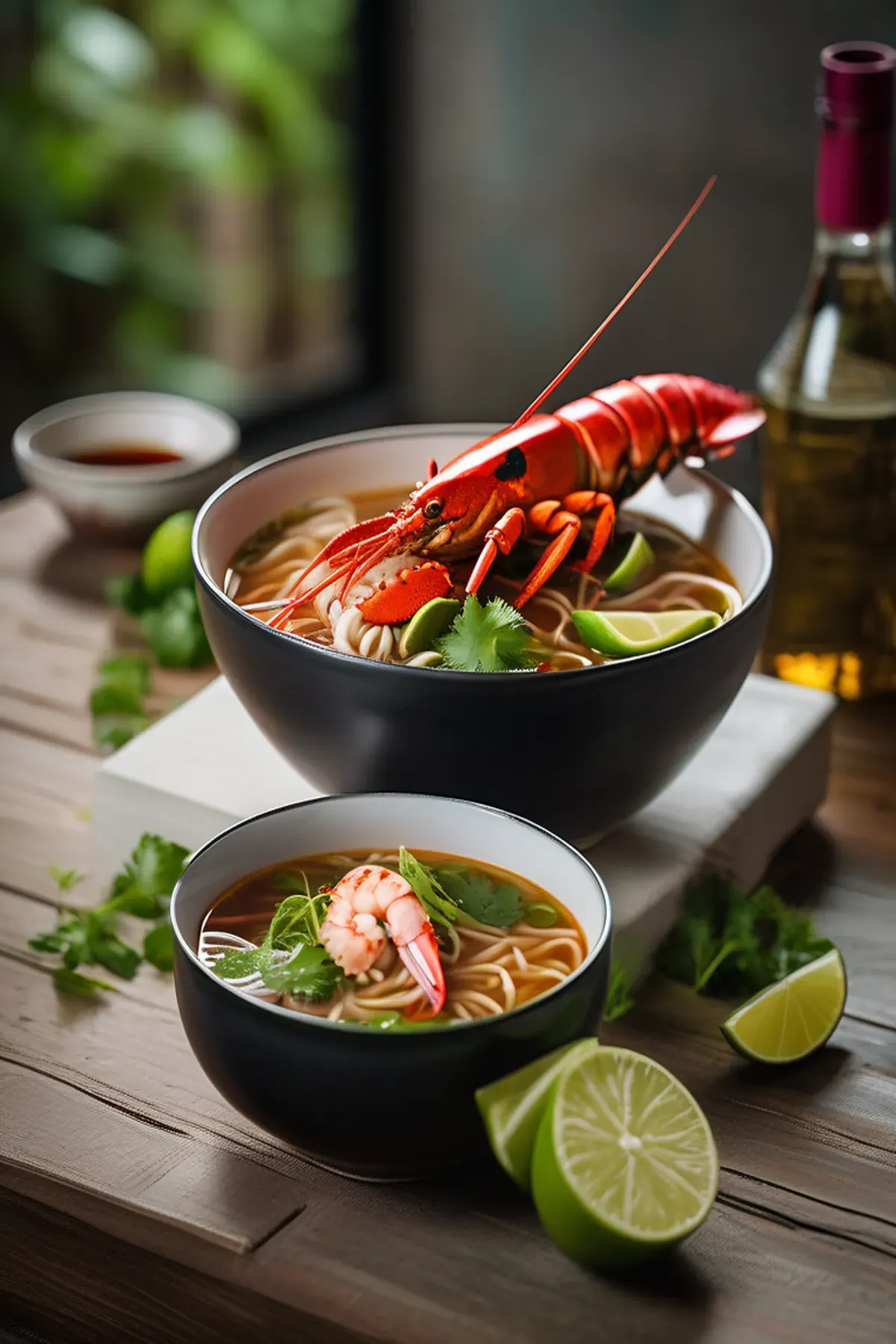 A rich and savory Vietnamese-inspired noodle soup featuring succulent lobster meat.