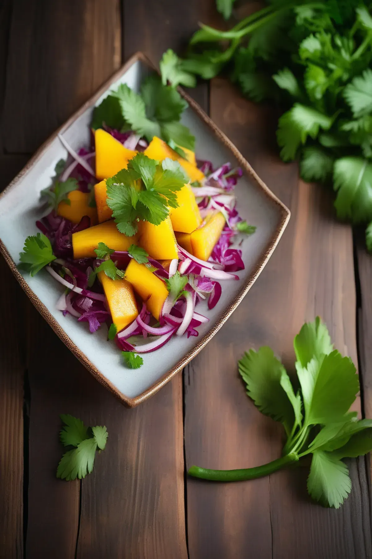 A sweet and tangy salad featuring fresh mango, red onion, and a hint of cumin.