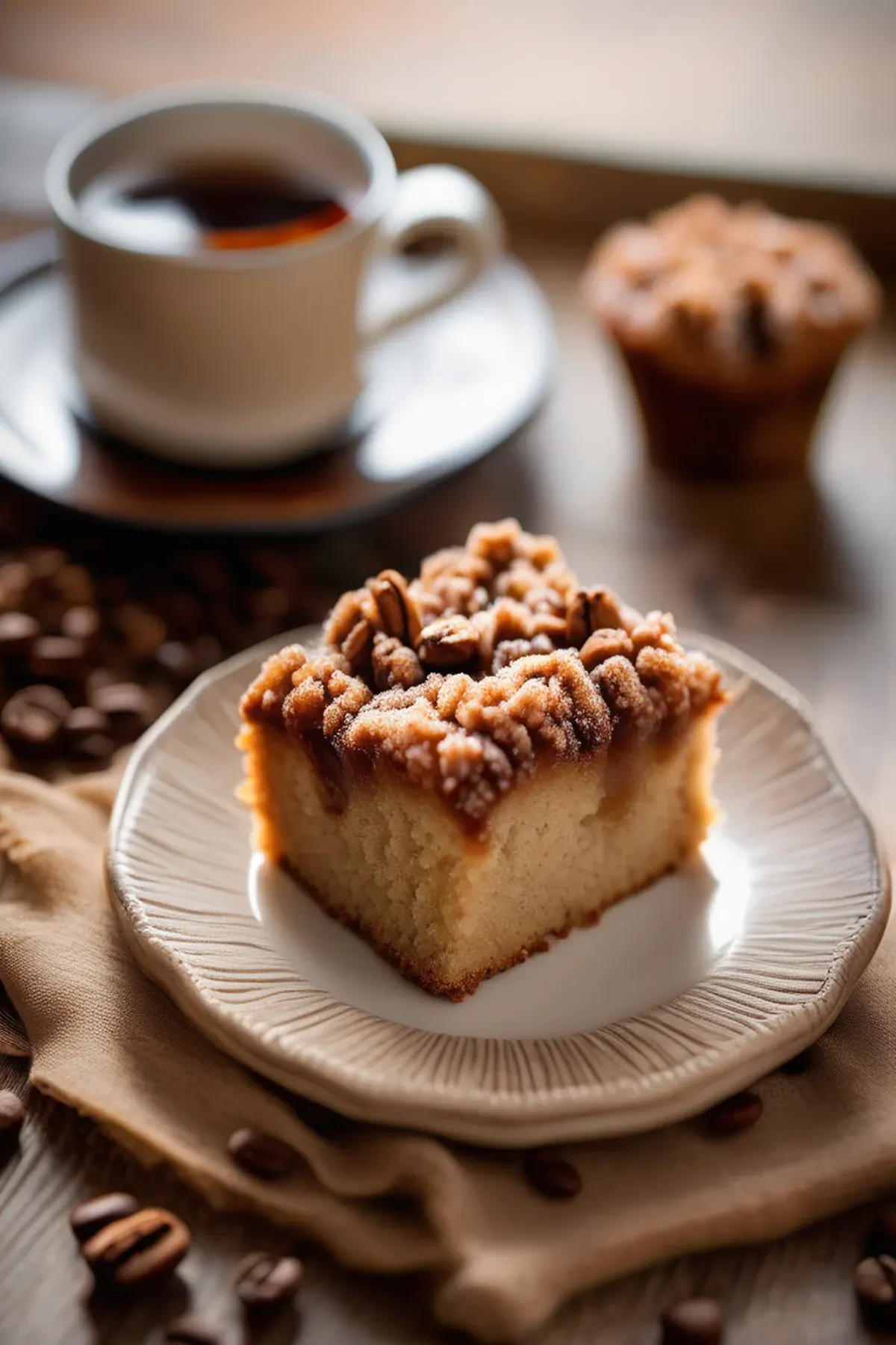Moist and flavorful coffee cake infused with the warmth of maple syrup, perfect for a cozy breakfast or brunch.