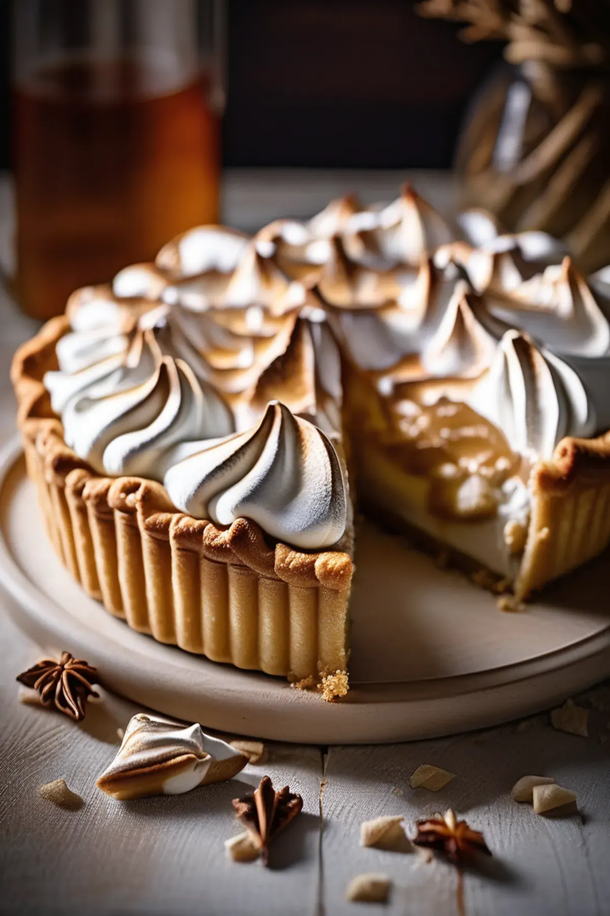 A sweet and tangy dessert featuring a crunchy meringue topping and a rich maple filling.