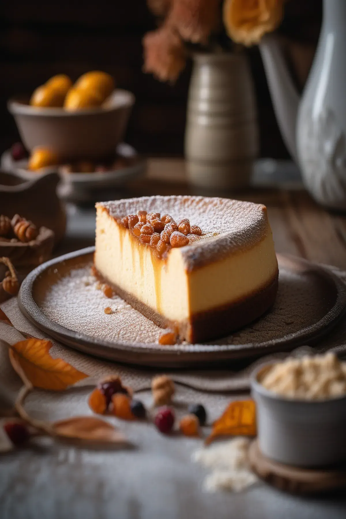 A rich and creamy cheesecake infused with the warm flavors of maple syrup and the tanginess of ricotta cheese.