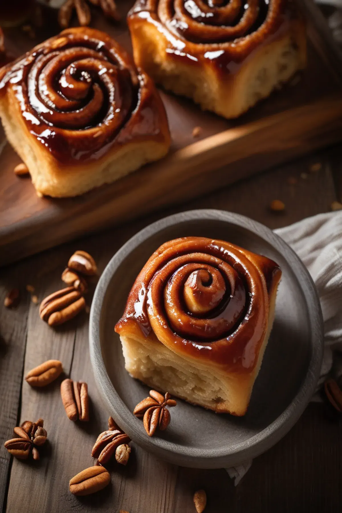Soft, fluffy buns smothered in a rich maple syrup glaze and topped with crunchy pecans.