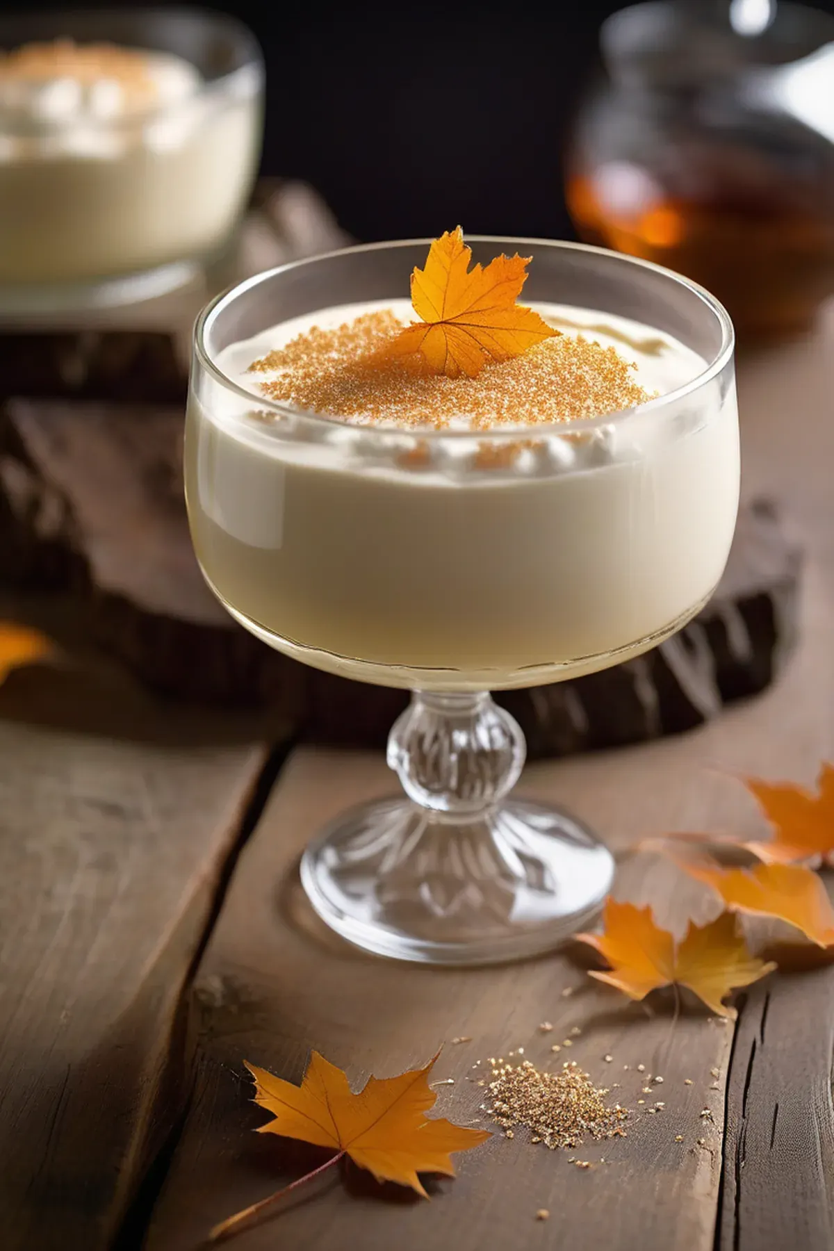 A creamy dessert infused with the rich flavors of maple syrup and topped with a caramelized sugar crust.