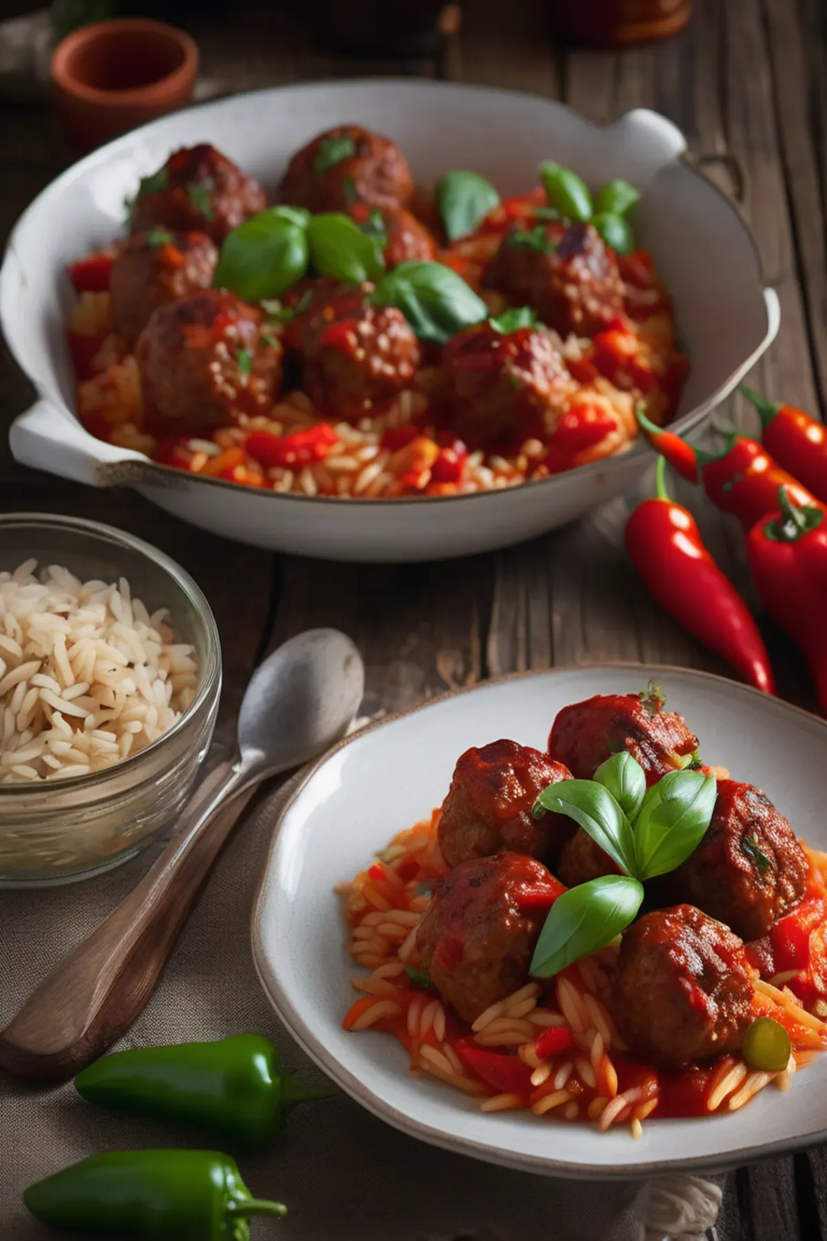 Meatball, pepper & orzo bake