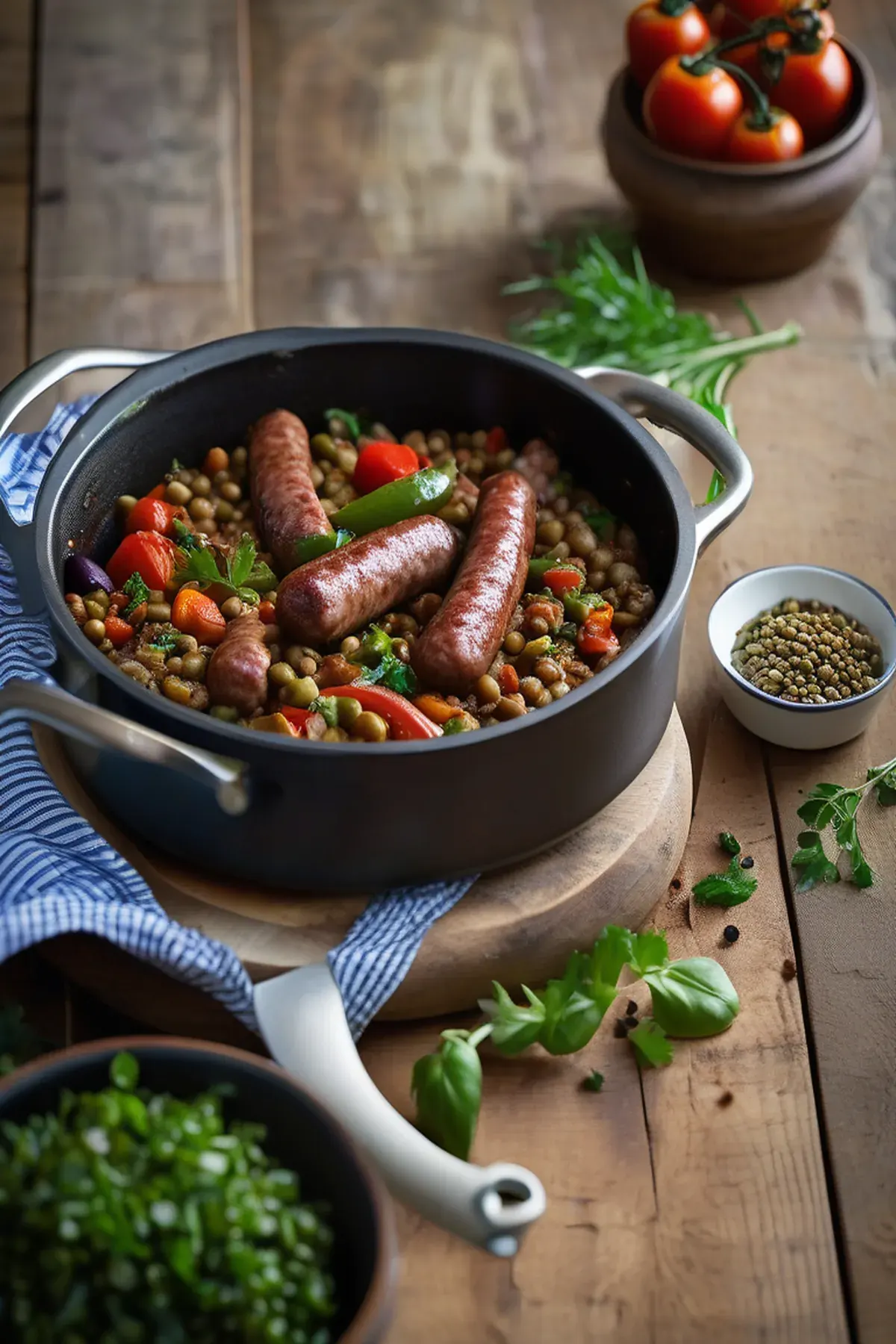 Mediterranean-inspired sausage & lentil one pot