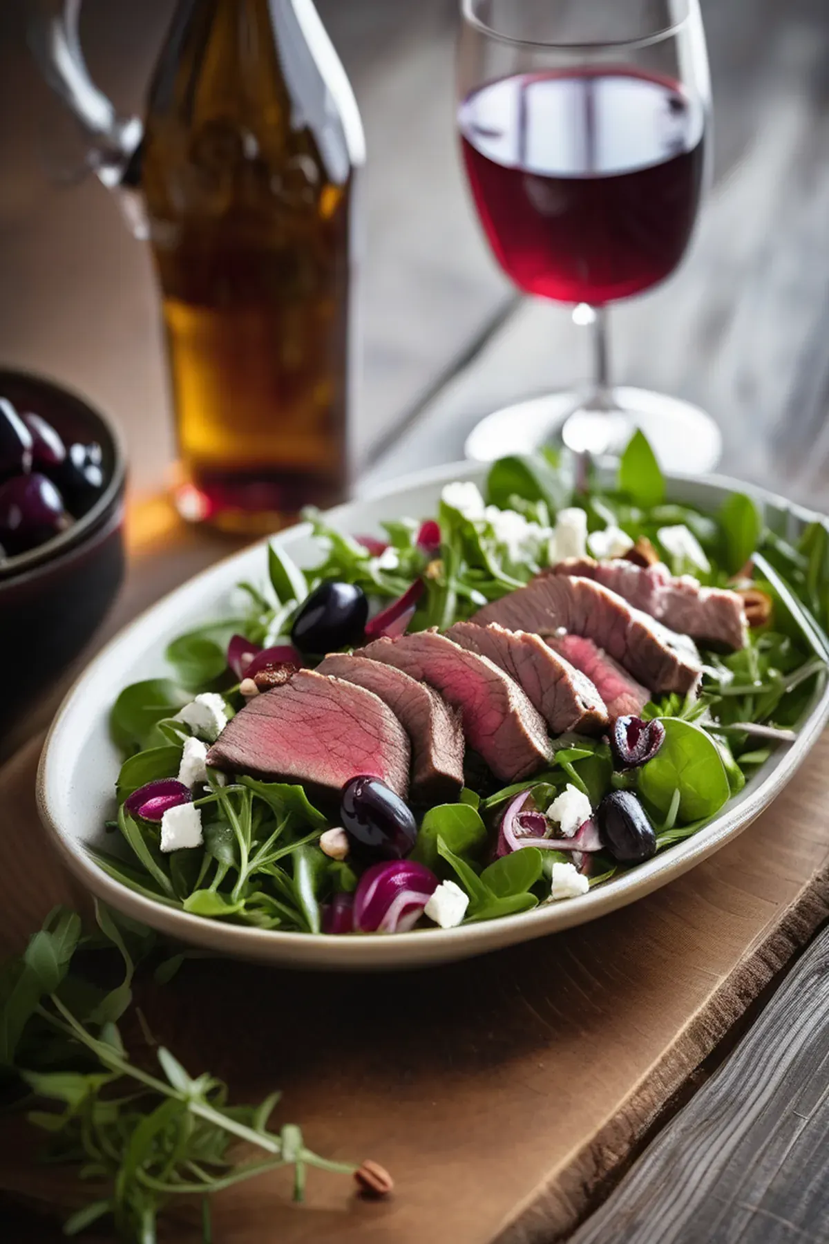 A fresh and flavorful salad featuring lamb, feta, and Kalamata olives, all tied together with a zesty lemon vinaigrette.