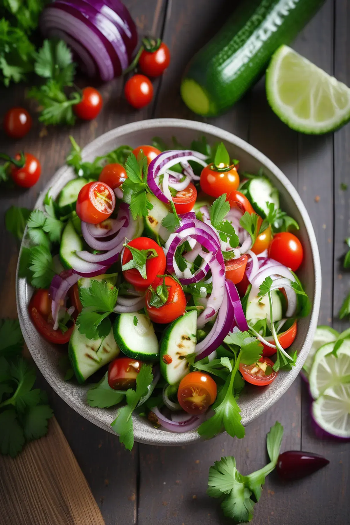 A refreshing and flavorful salad featuring creamy halloumi cheese, crunchy cucumber, and sweet cherry tomatoes.