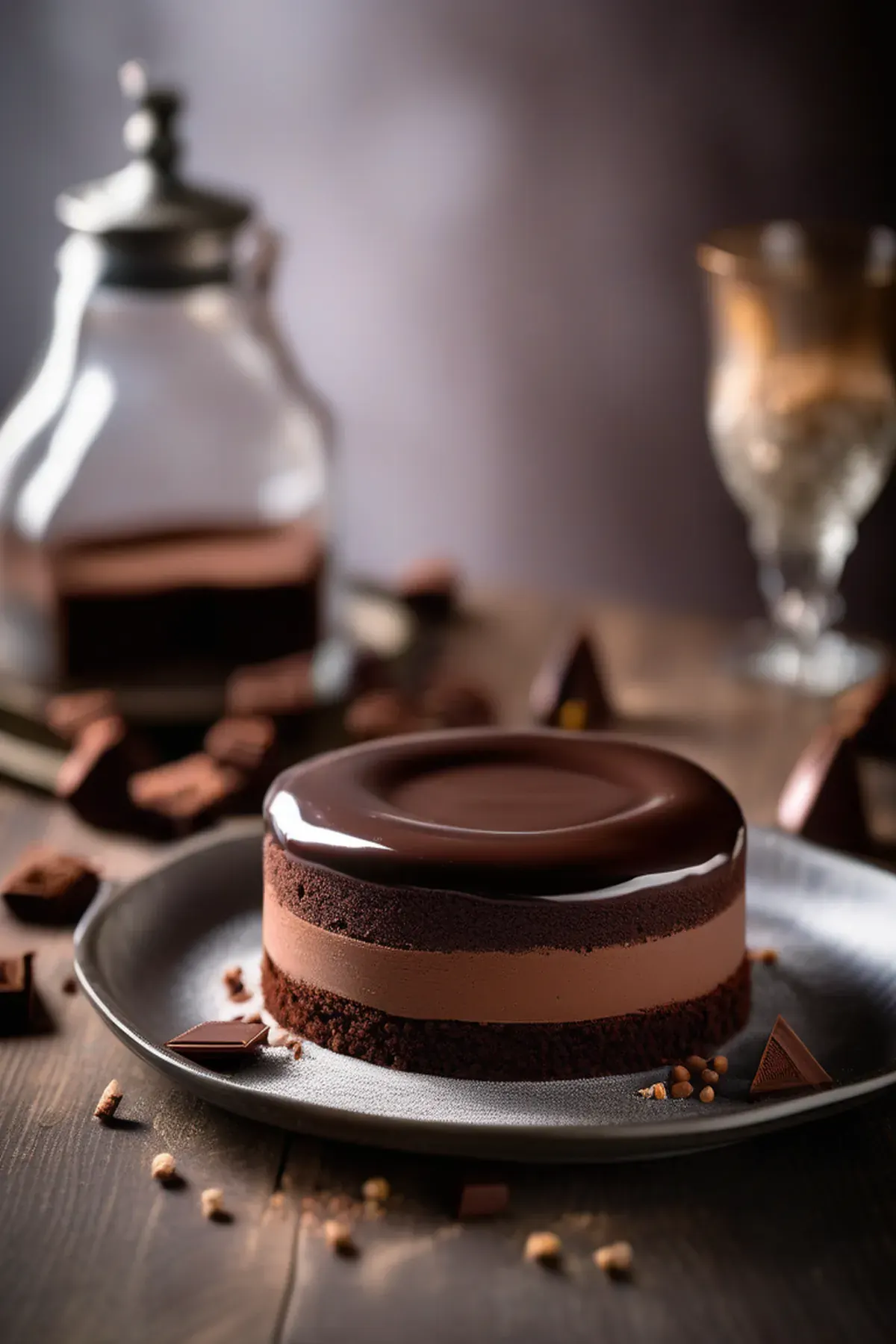 To assemble the entremet, place one cake layer on a serving plate, spread with buttercream, and top with another cake layer.