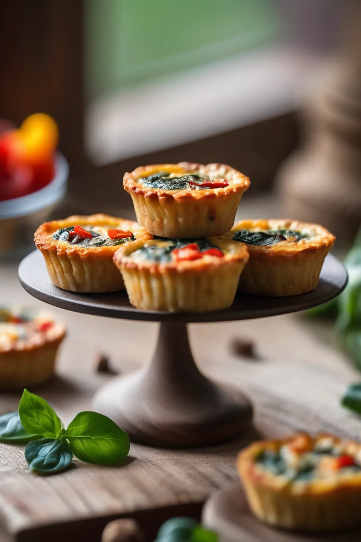 Bake in the preheated oven for 25 to 30 minutes until the quiches are set in the center and the tops are lightly golden brown.