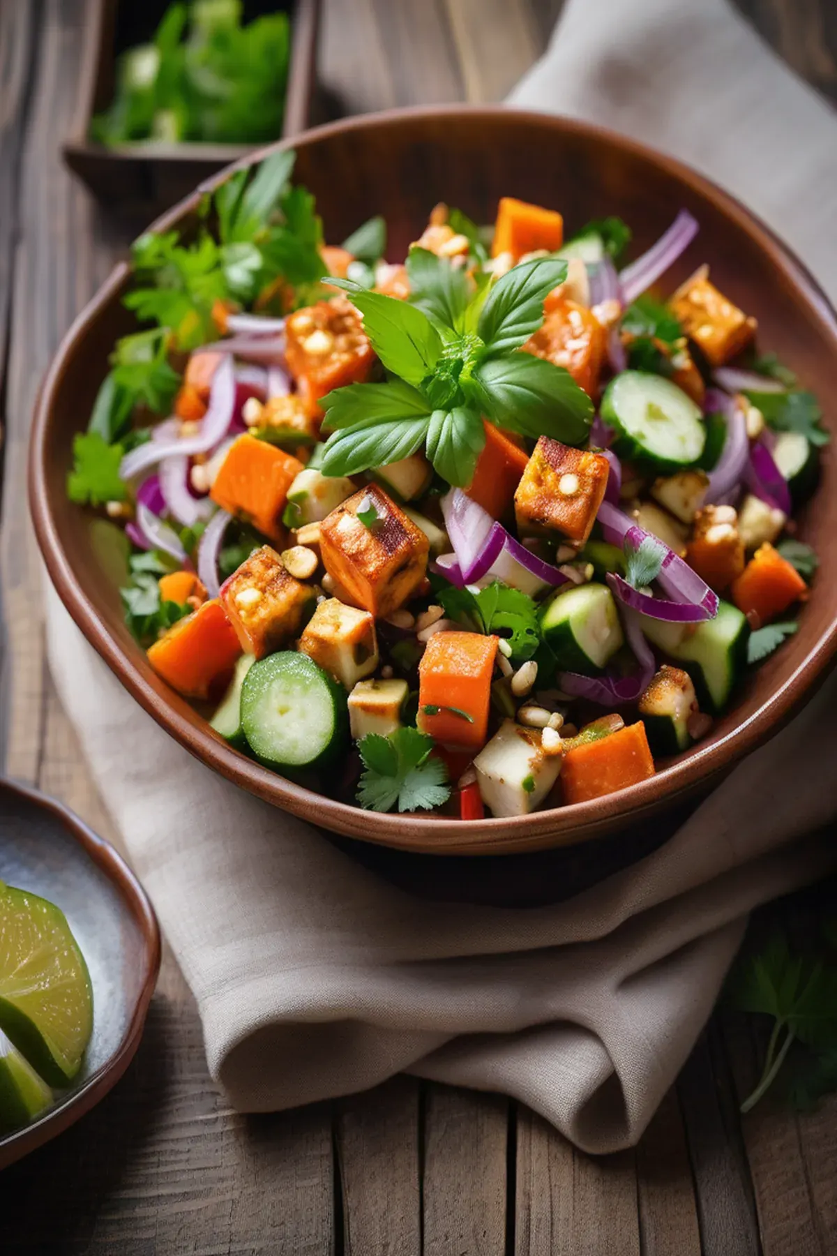 A flavorful and refreshing salad inspired by the vibrant cuisine of Morocco, featuring creamy paneer, crunchy vegetables, and a tangy dressing.
