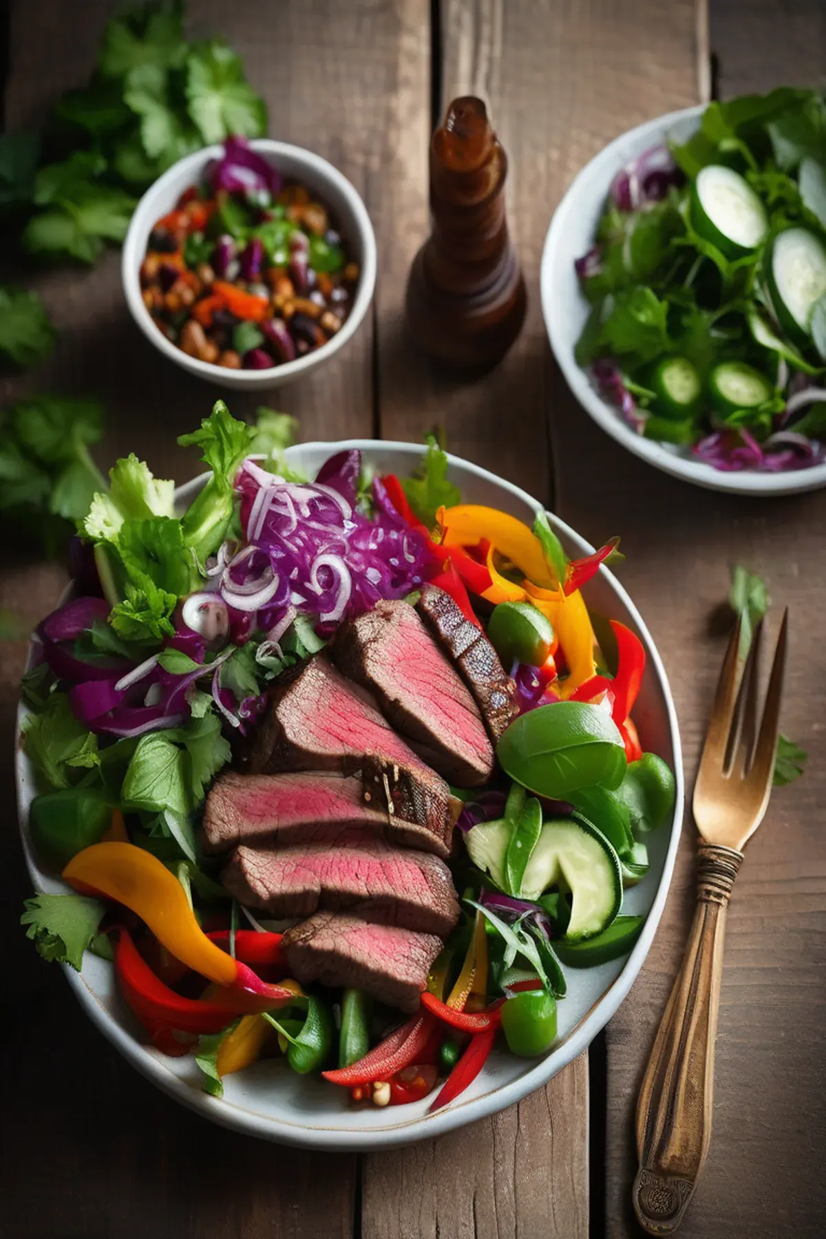 A flavorful and refreshing salad inspired by the vibrant cuisine of Morocco, featuring tender steak and crunchy vegetables.