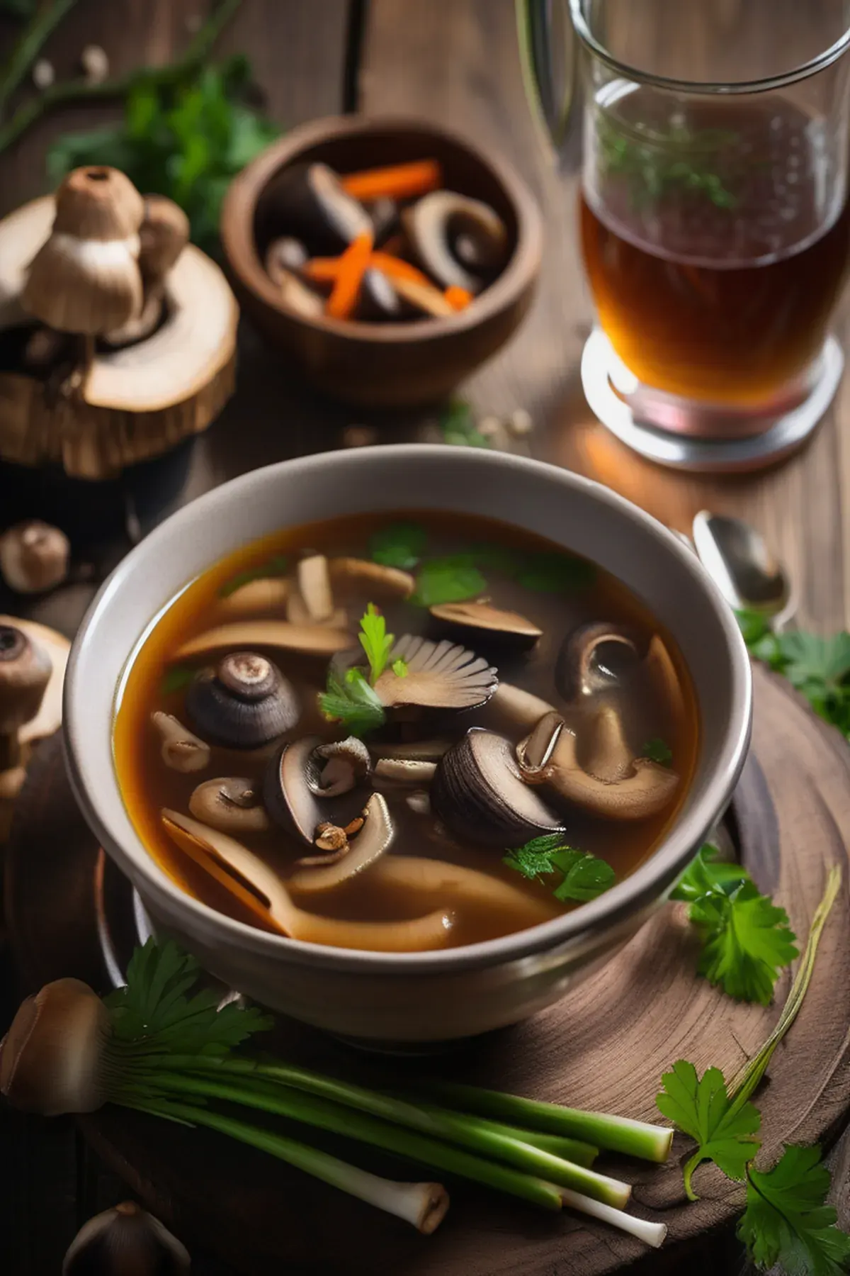 A deeply savory and umami-rich broth crafted from a medley of mushrooms, aromatic vegetables, and herbs. This light yet nourishing elixir is perfect as a standalone soup or as a flavorful base for other dishes.