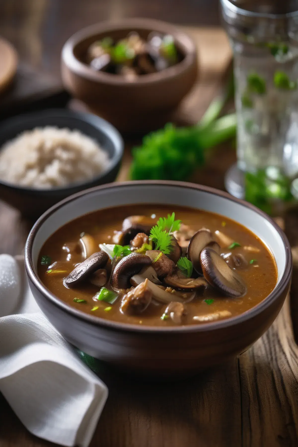 A rich and earthy gumbo loaded with sautéed mushrooms, okra, and aromatic vegetables in a deeply flavored roux-based broth. Perfect served over rice for a comforting, wholesome meal.