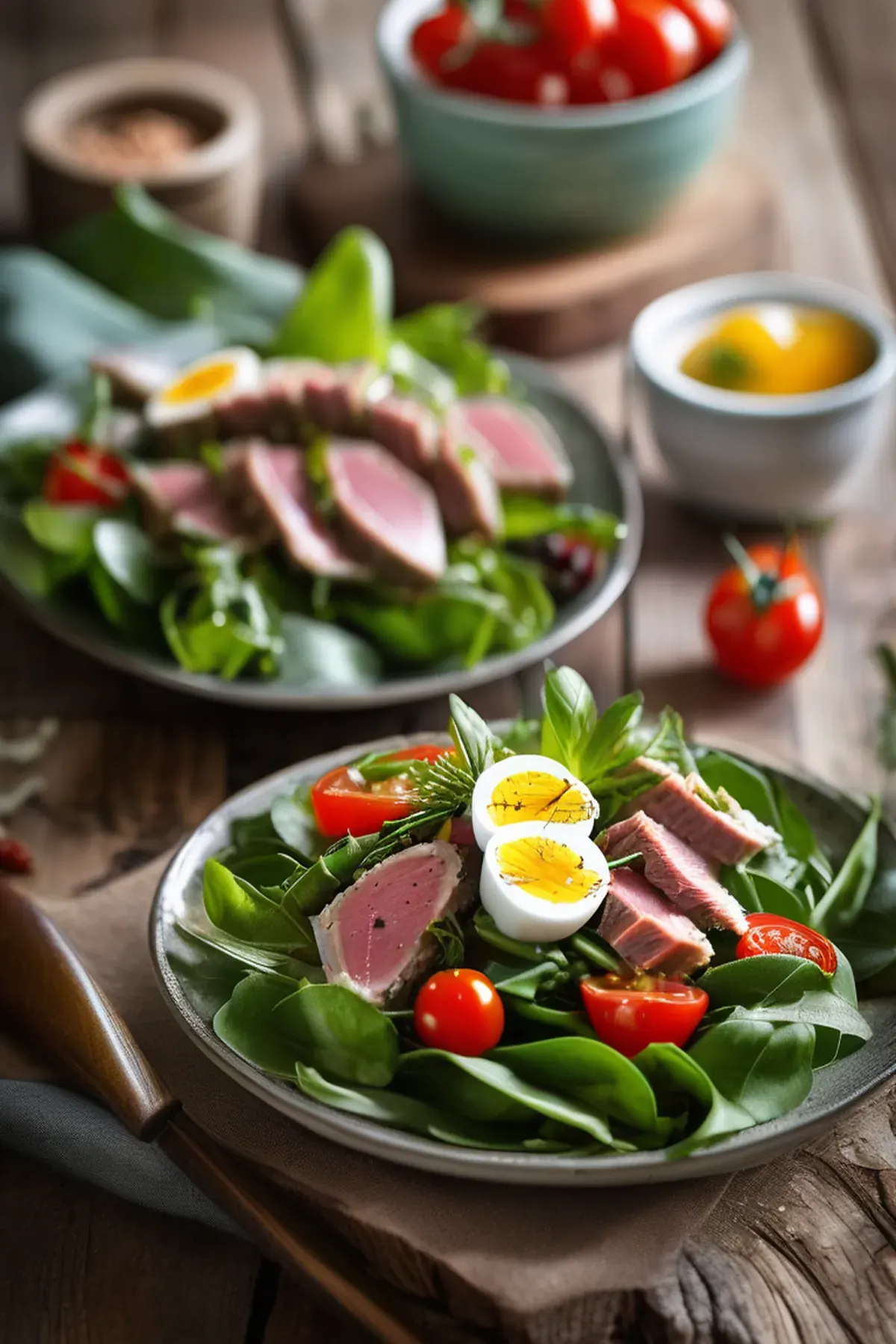 A classic French salad featuring tender tuna, crunchy vegetables, and a tangy vinaigrette.