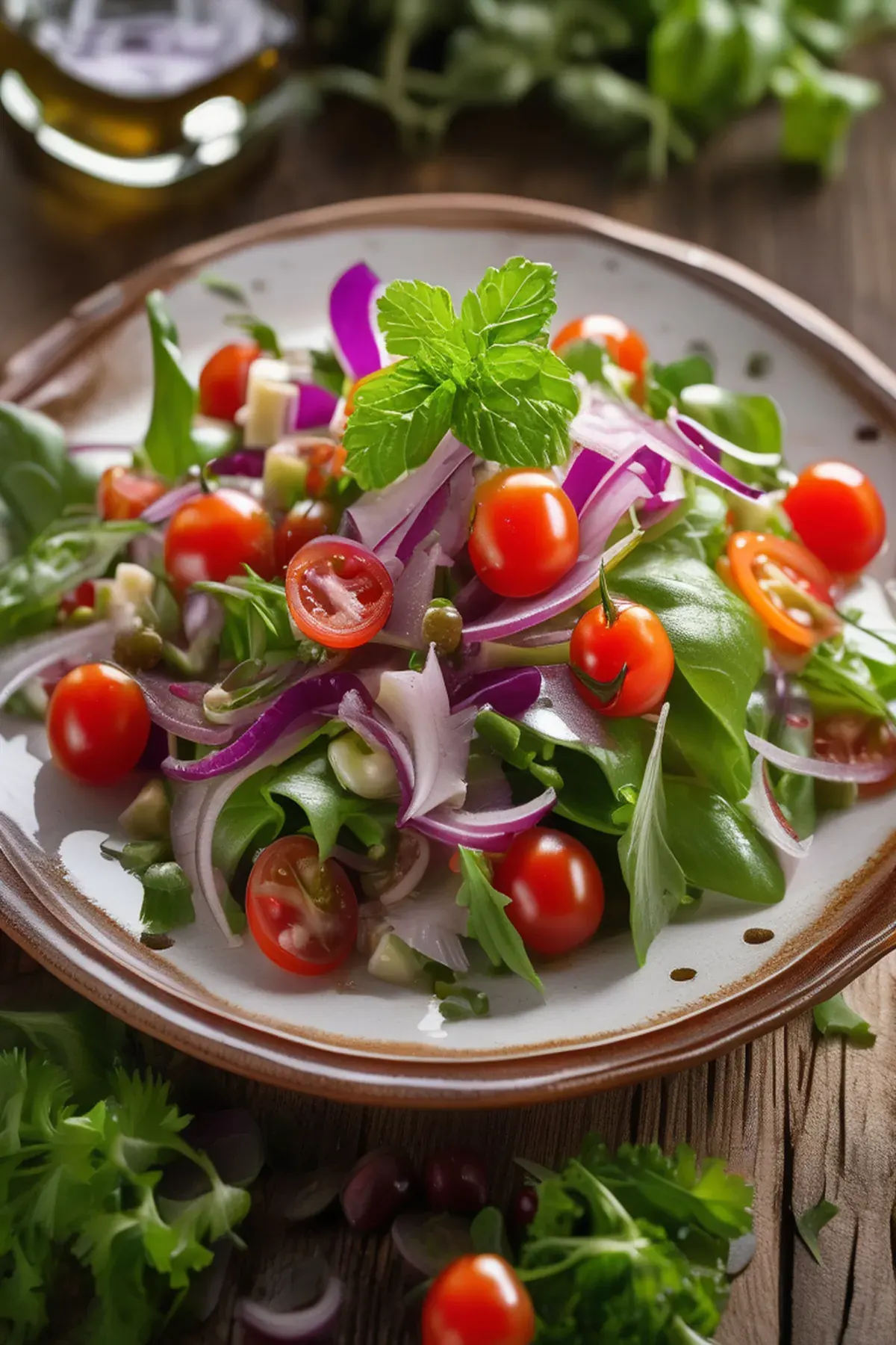A simple yet elegant salad made with mixed greens, cherry tomatoes, and a tangy vinaigrette.