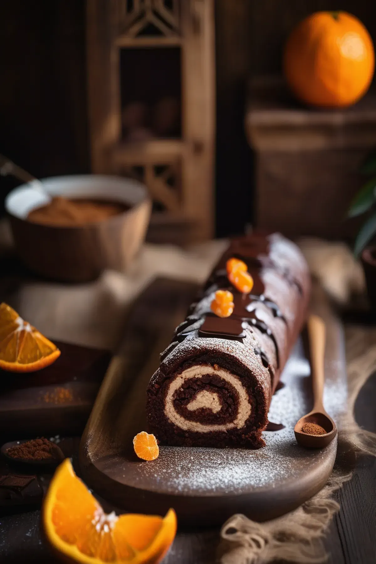 Roll the cake into a tight log and slice into 4 equal pieces.