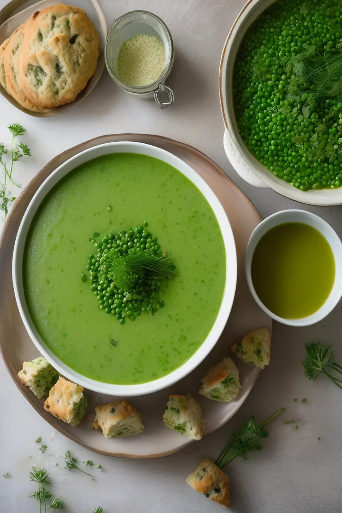 Pea & broccoli soup with chive scones