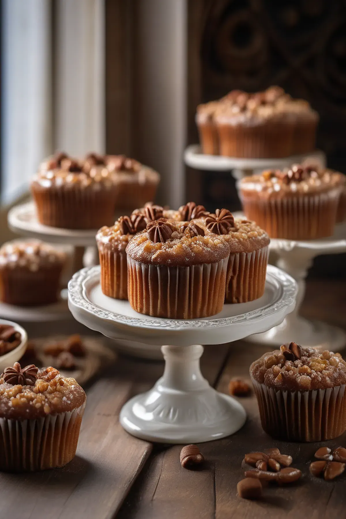 Moist and flavorful cakes filled with a rich praline filling, topped with a delicate butterfly design.