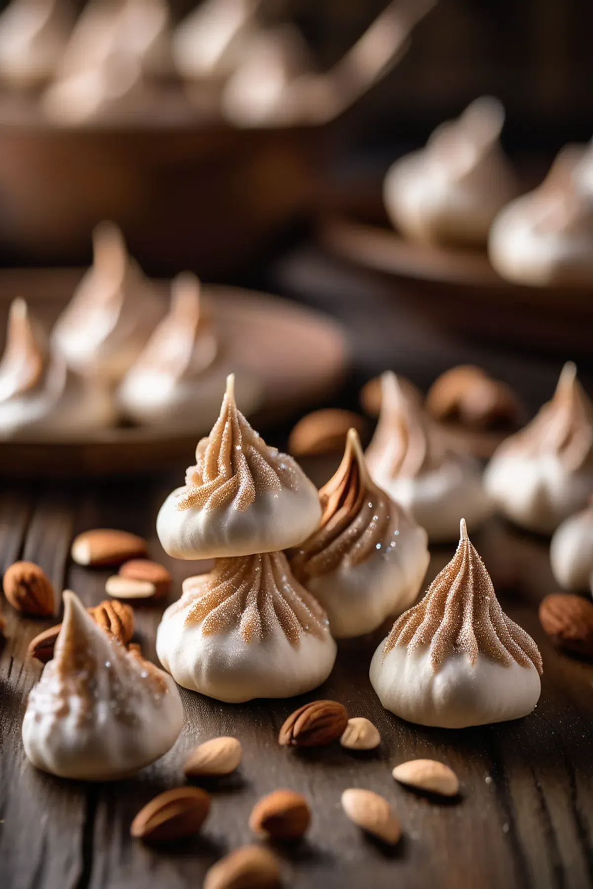 A sweet treat consisting of crispy meringue kisses coated in a rich praline sauce.