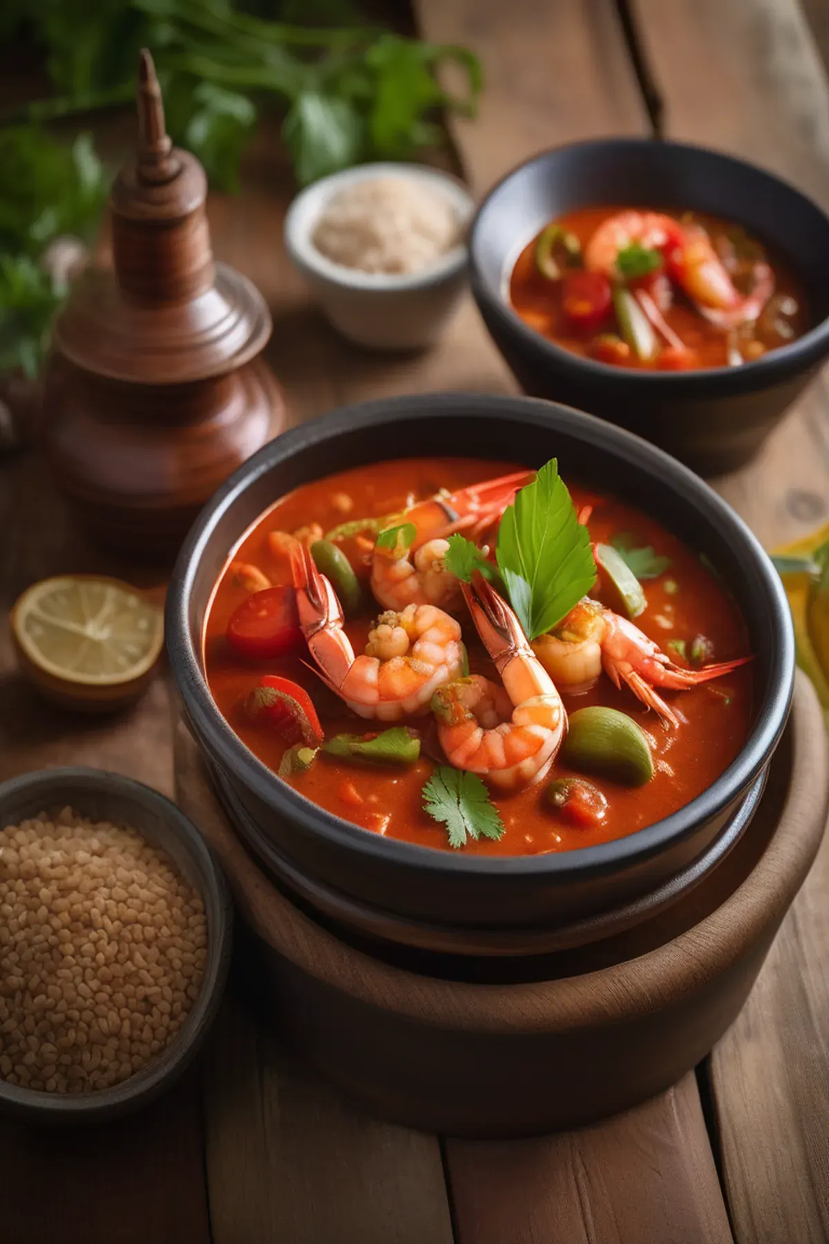 A spicy and flavorful seafood stew originating from Louisiana, blending succulent prawns with rich tomatoes and aromatic spices.