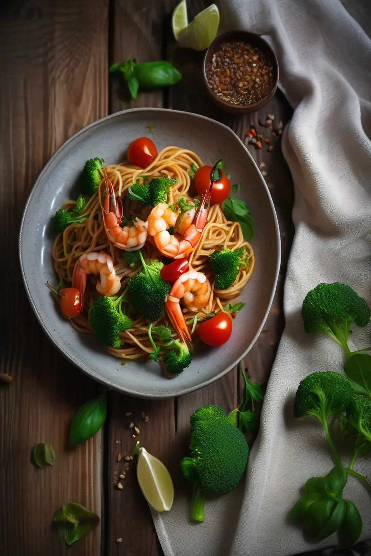 This is one of my favorite quick weeknight dinners because it comes together in just 15 minutes, which means you can have a restaurant quality meal on the table before you know it. The harissa paste brings this wonderful smoky, spiced depth that makes the prawns and cherry tomatoes sing, while the broccoli adds a nutritious punch of vitamins and fibre to keep things wholesome. It's simple enough that you don't need any fancy cooking skills, yet impressive enough to serve when friends drop by. Best of all, it uses just a handful of pantry staples and fresh ingredients, so you won't break the bank making it.