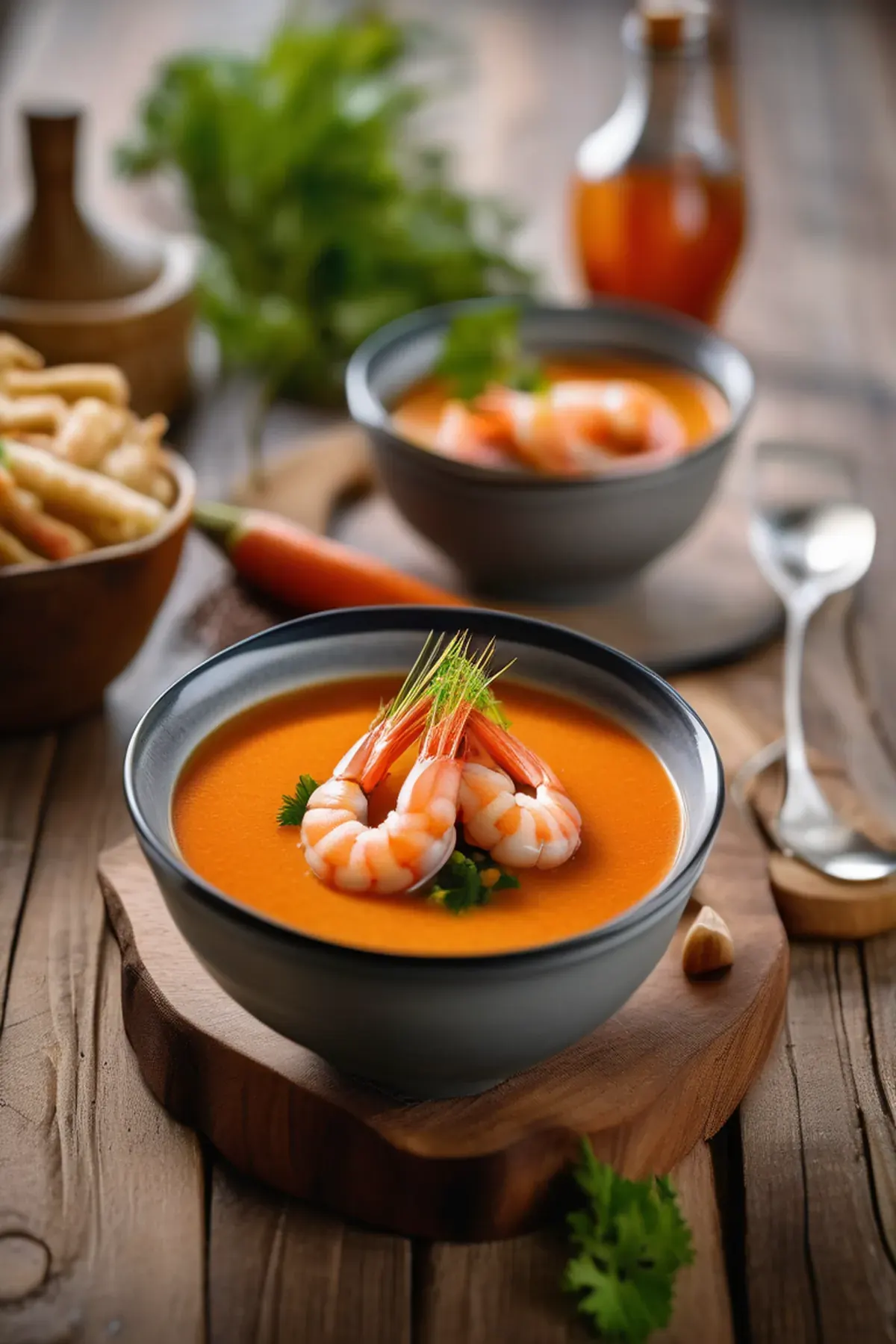Indulge in the rich flavors of this hearty prawn soup originating from France.