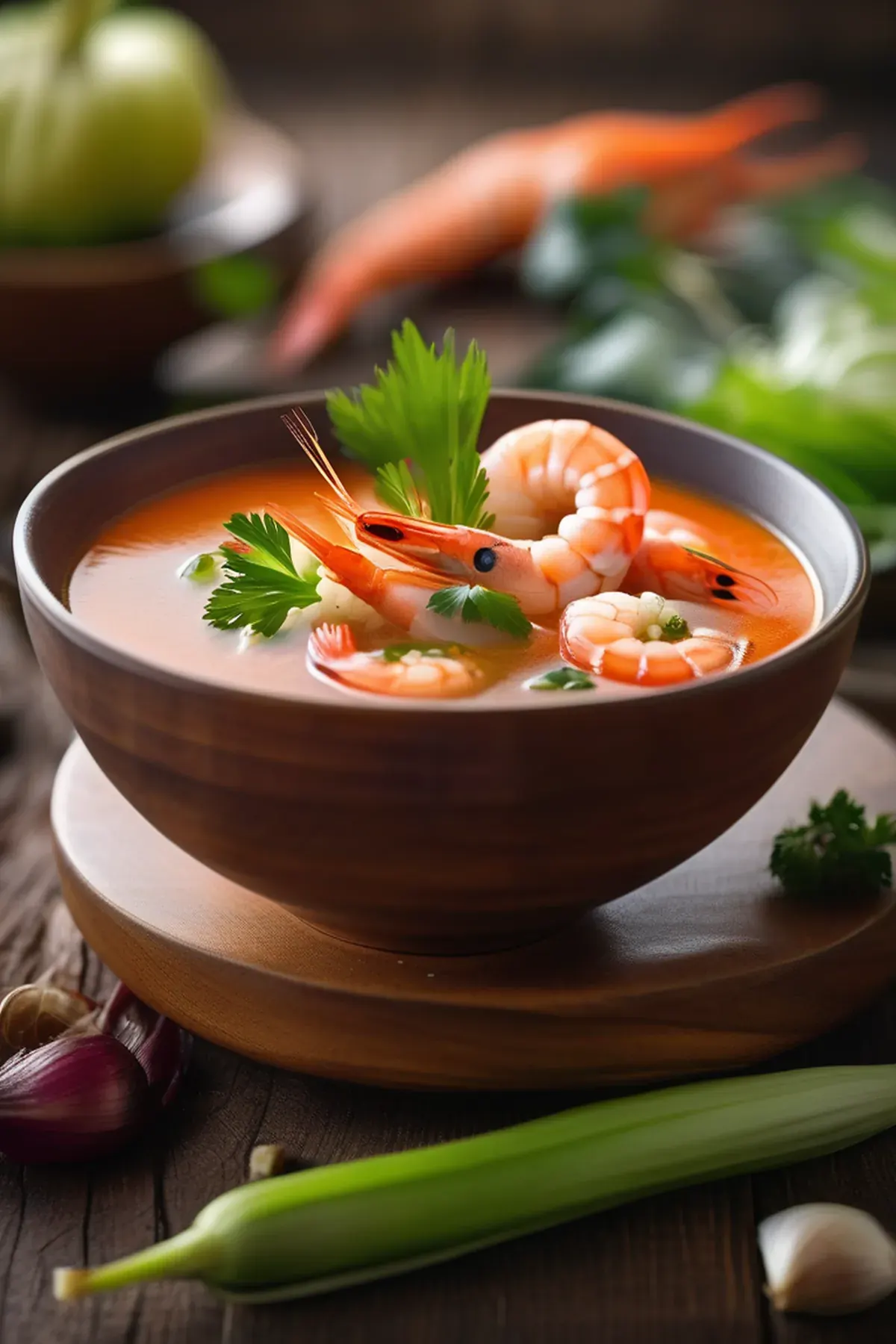 A light and flavorful seafood soup made with prawns, vegetables, and aromatic spices.