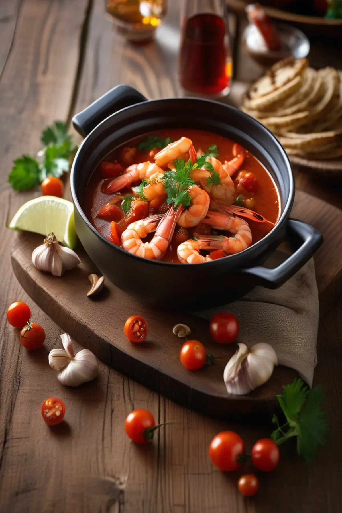 A hearty and flavorful seafood stew made with succulent prawns and a hint of spices.