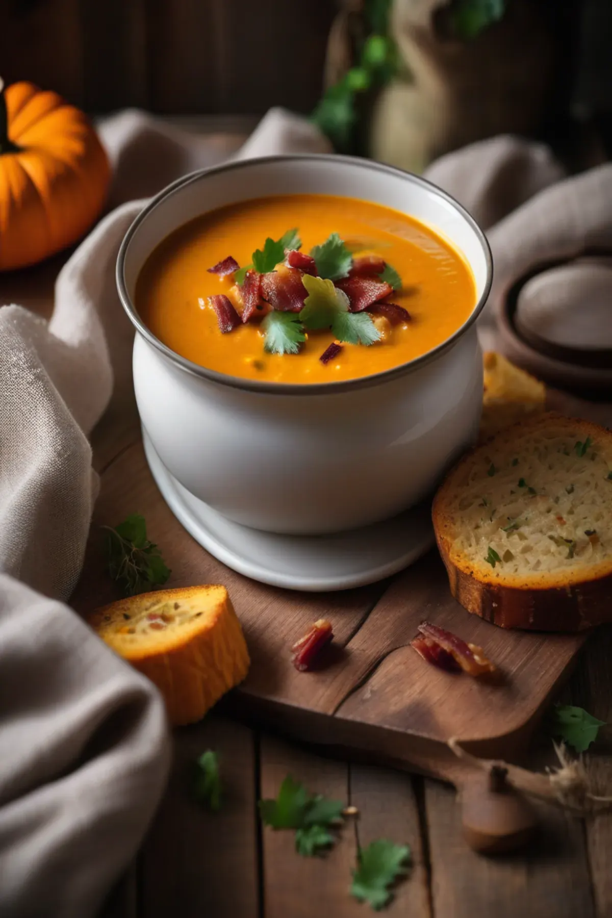 A silky, warming chowder that combines roasted pumpkin with crispy bacon, tender potatoes, and aromatic sage for the ultimate comfort soup.