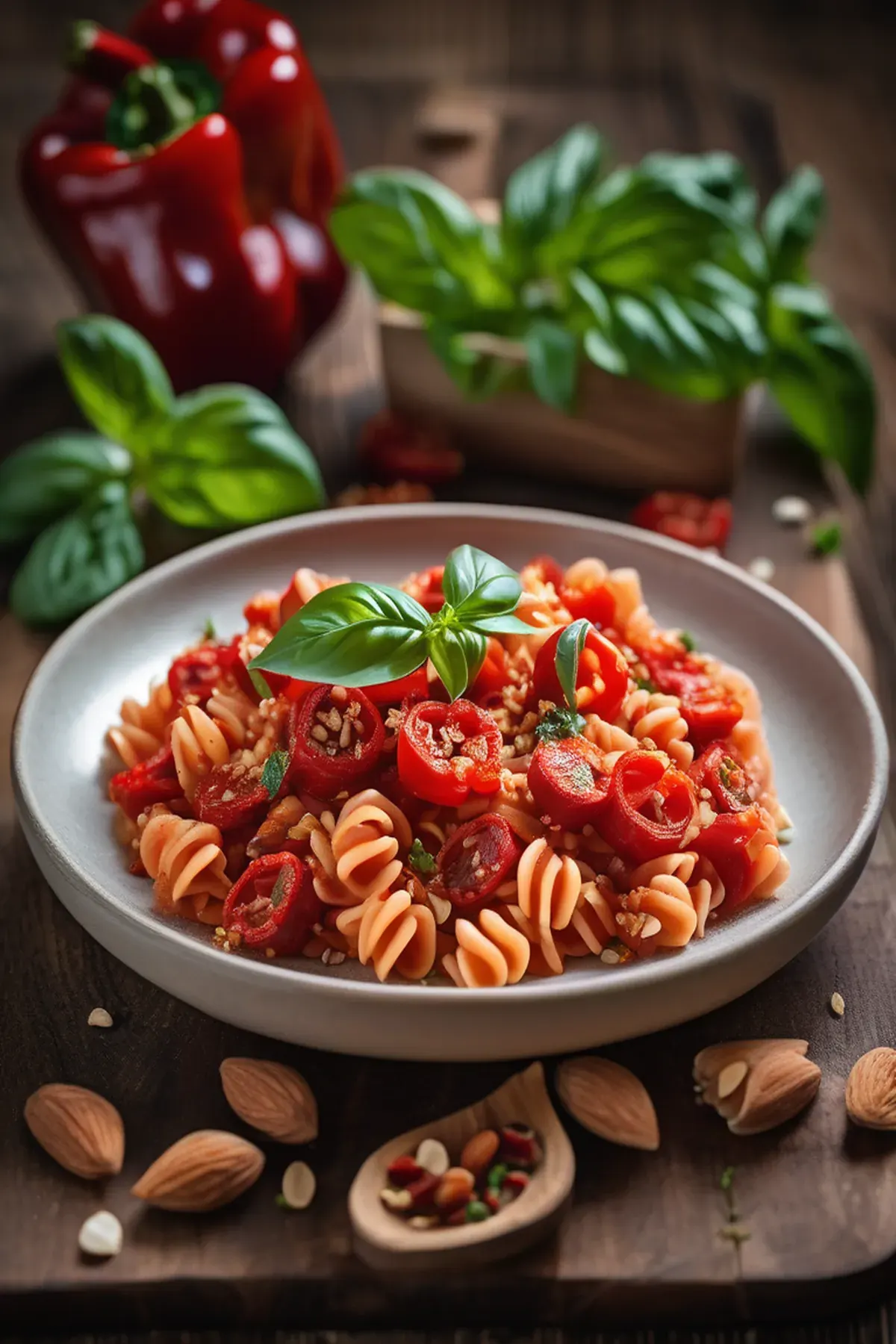 This is one of my favorite quick weeknight dinners because it comes together in just 25 minutes from start to finish. The beauty of this pasta is how the crispy salami adds such rich flavor that you don't need a heavy sauce, and the roasted red peppers bring natural sweetness and vitamin C to keep things bright and healthy. Toasted almonds give it a wonderful crunch while the basil keeps everything fresh. It's simple, affordable, and honestly feels far more impressive than the minimal effort it requires.