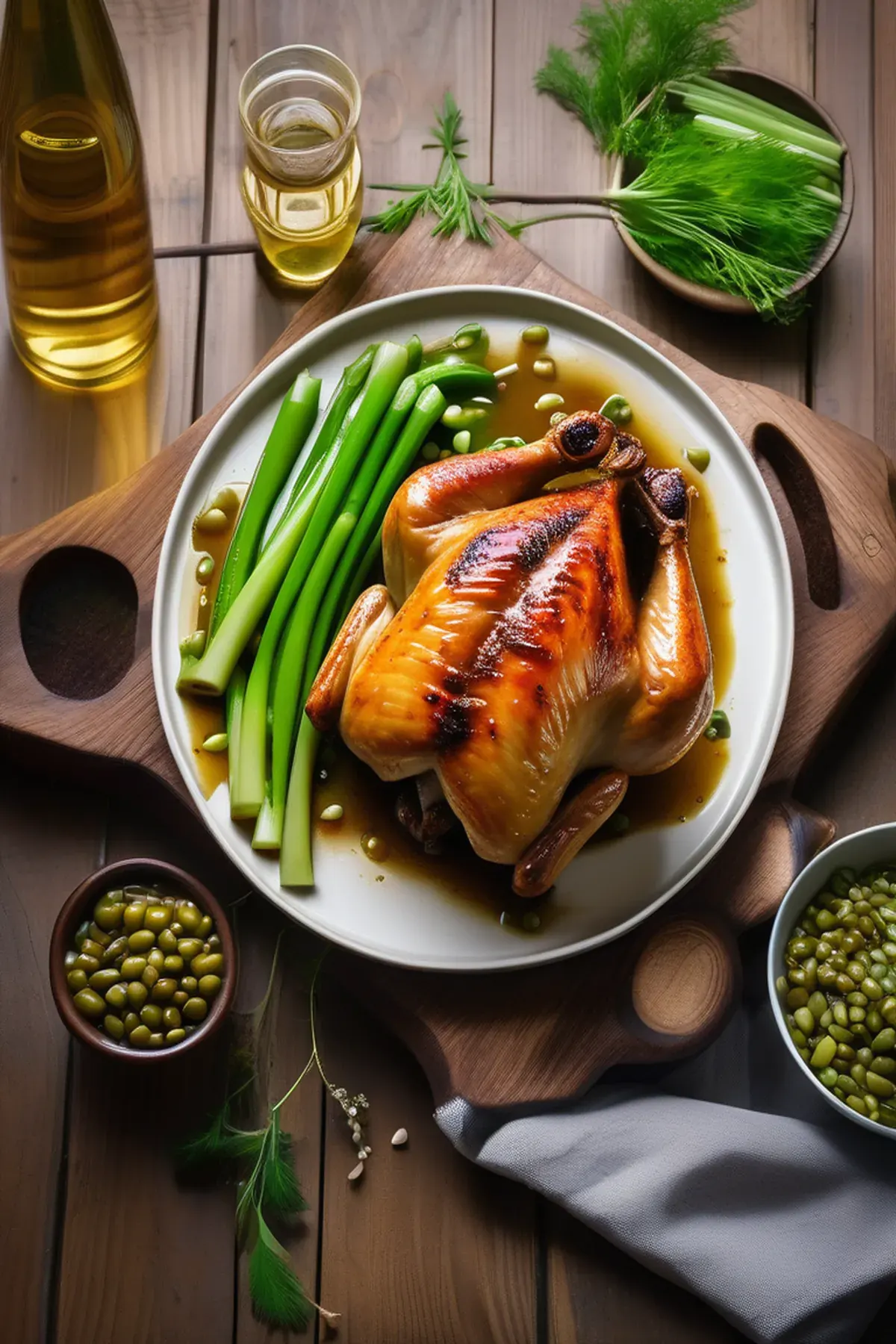 Roast chicken with celery & beans
