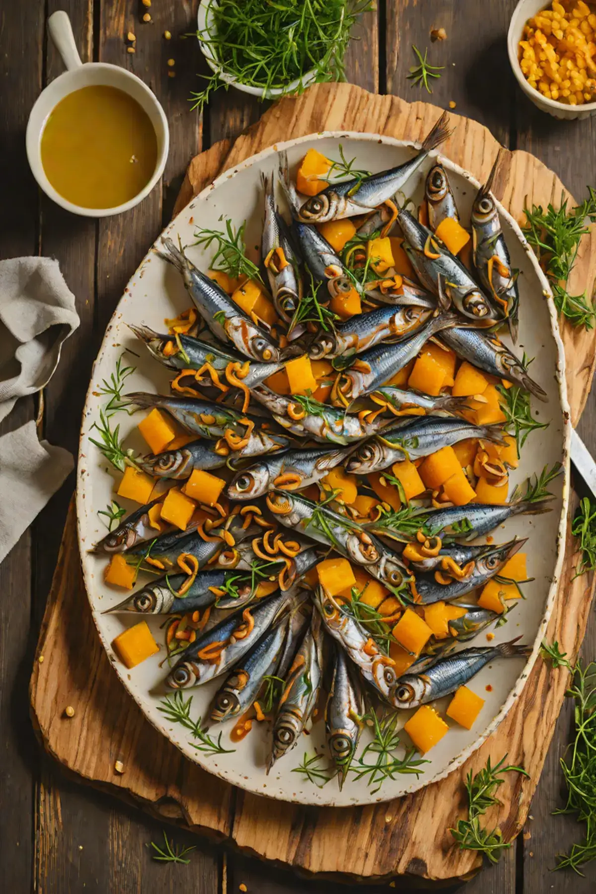 Preheat your oven to 200°C (400°F). Pat the cleaned anchovies dry with paper towels and arrange them on a parchment-lined baking sheet.