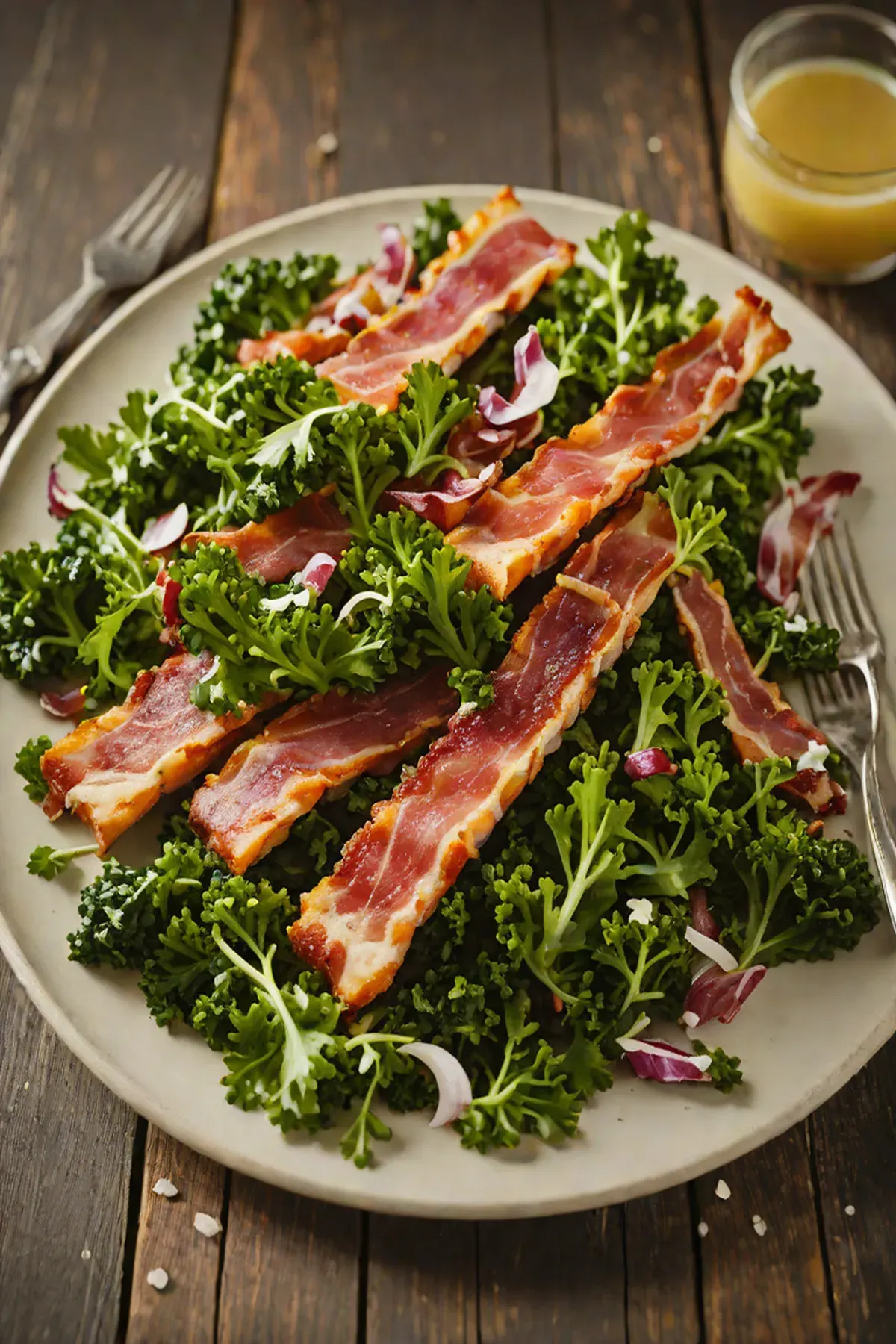 Transfer to a serving bowl and serve immediately while the bacon remains crispy and the kale is still warm.