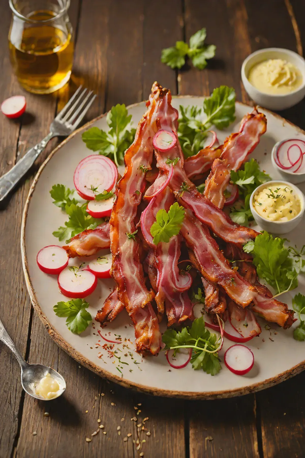 Drizzle the mustard-honey glaze over the bacon and radish mixture, stirring well to coat everything evenly.