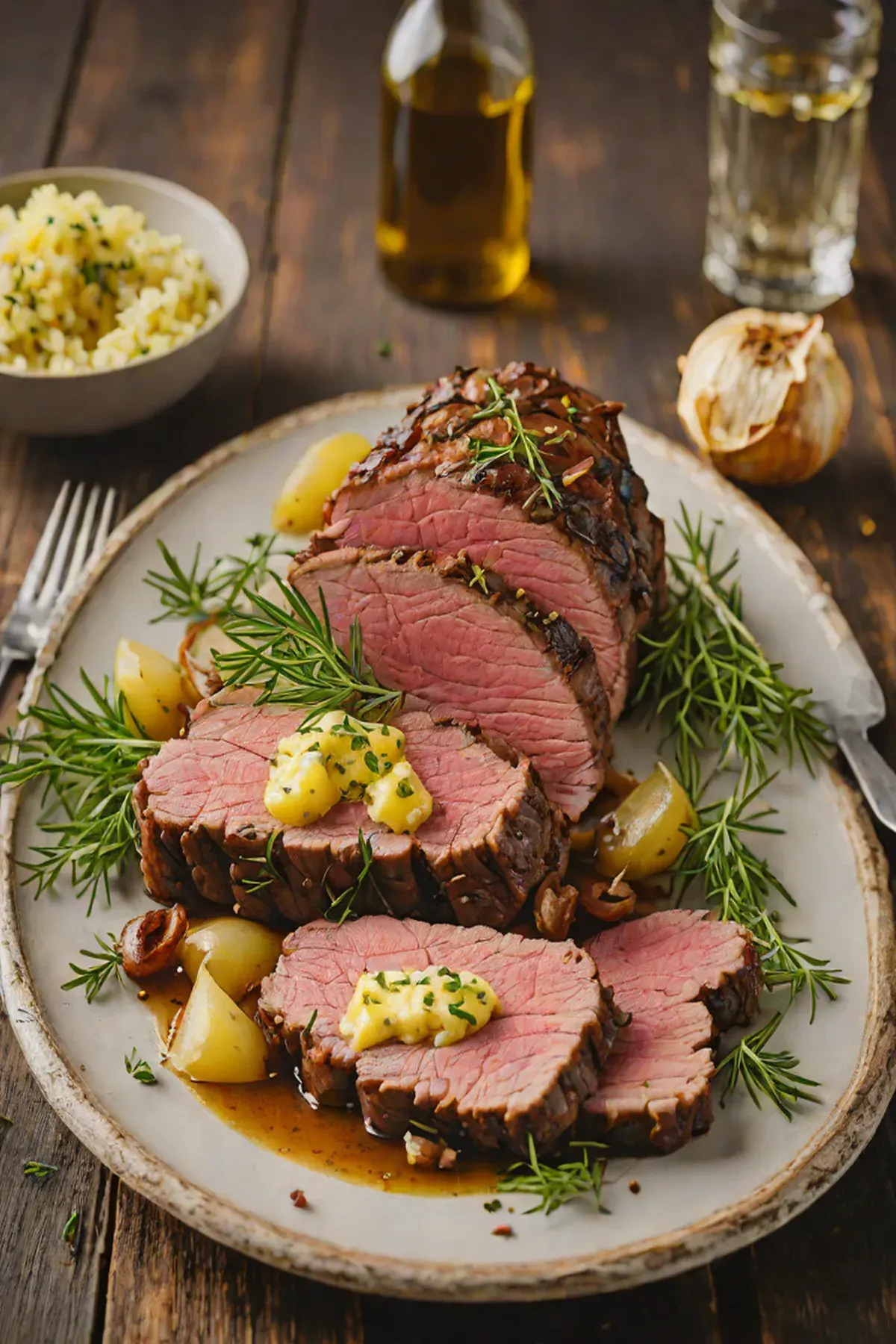 Roasted Beef with Caramelized Onions and Herb Butter