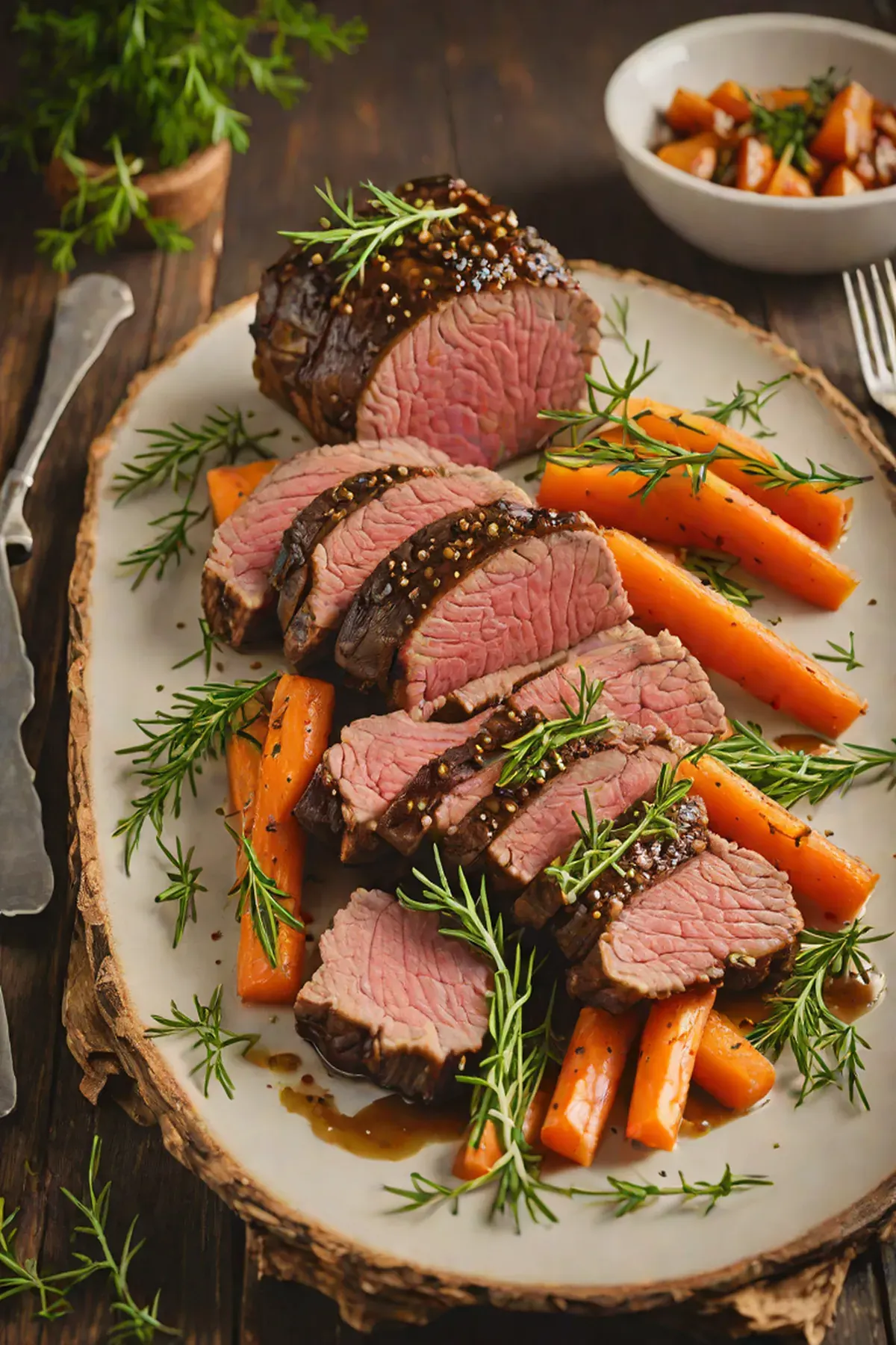 Roasted Beef with Glazed Carrots and Thyme