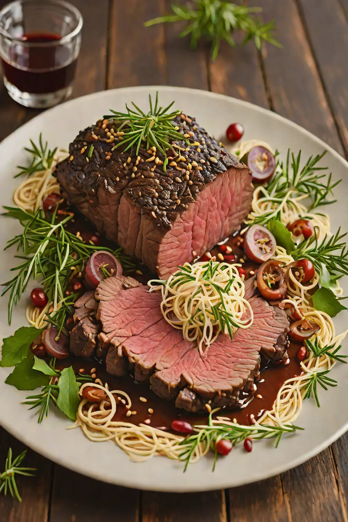 Roasted Bison with Bean Sprout Medley