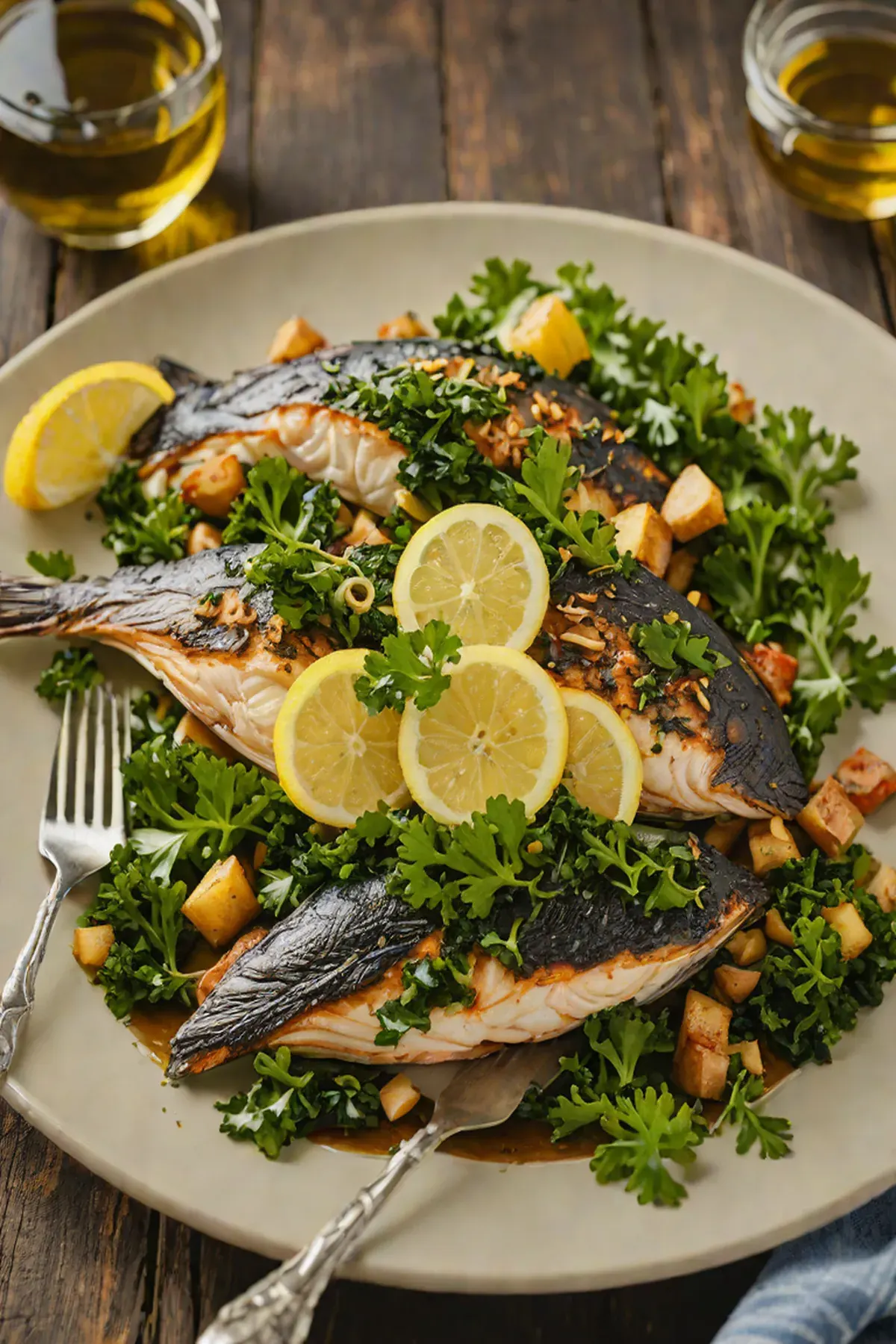 Roasted Catfish with Kale
