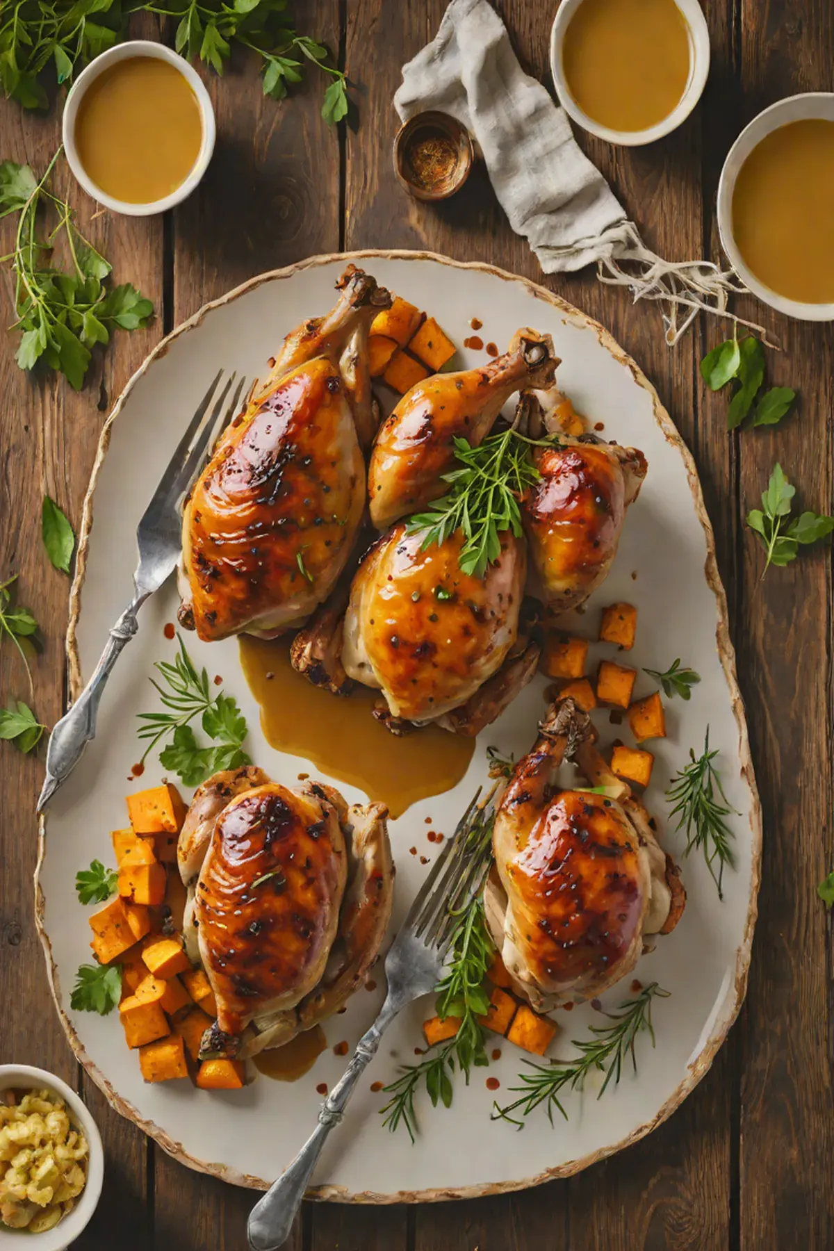 Roasted Chicken with Sweet Potato and Herb Glaze