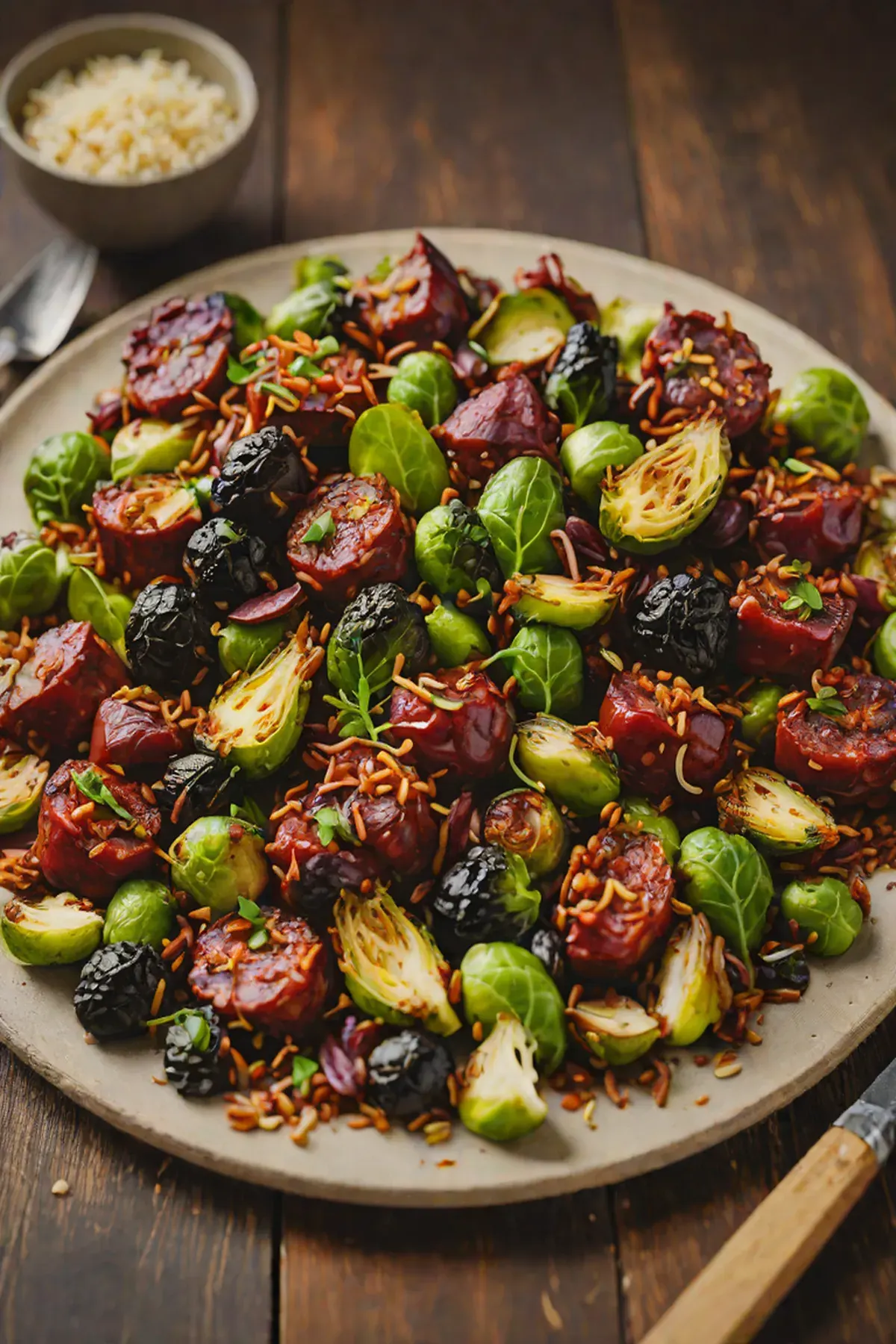 Roasted Chorizo with Brussels Sprouts and Crispy Garlic