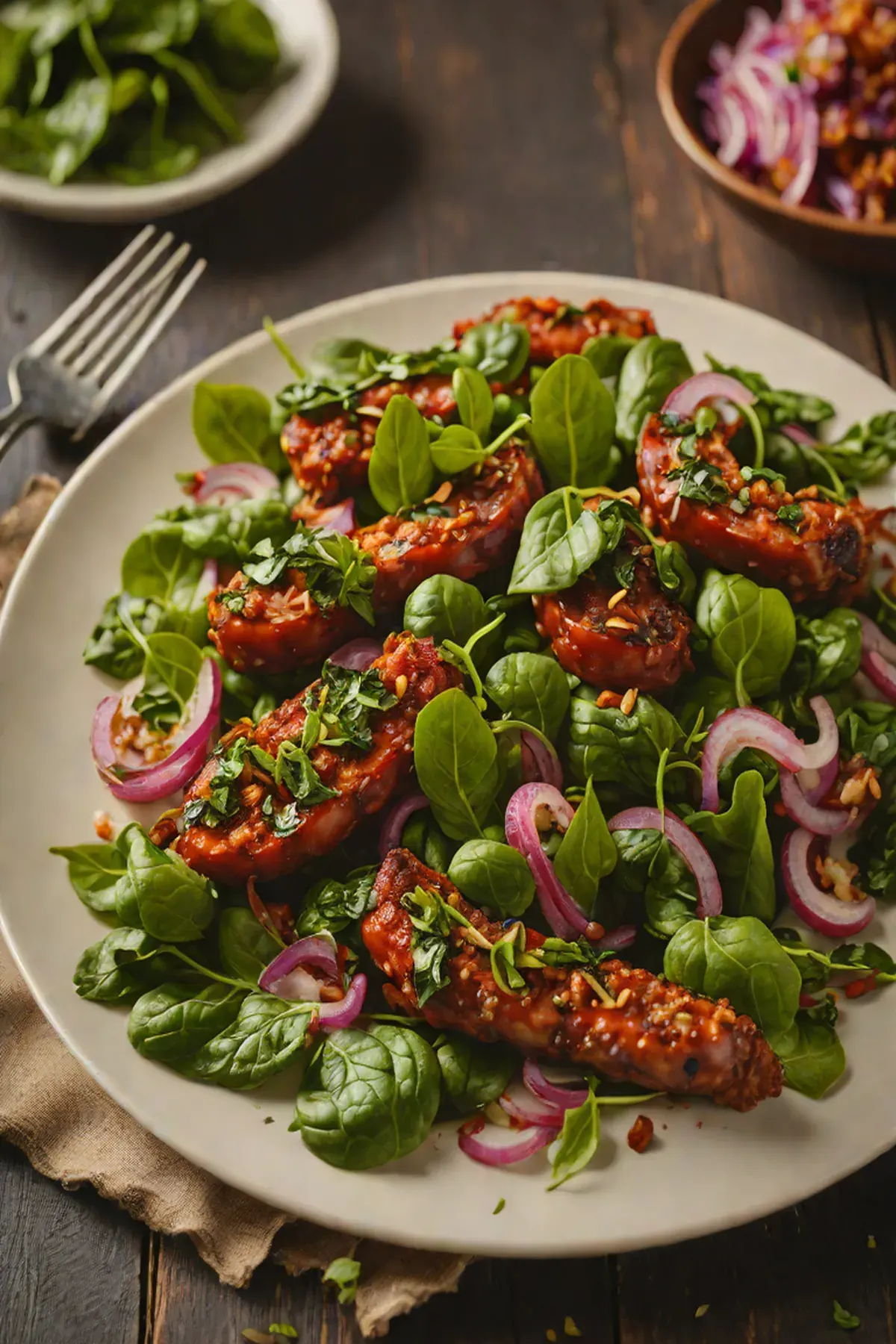 Roasted Chorizo with Spinach