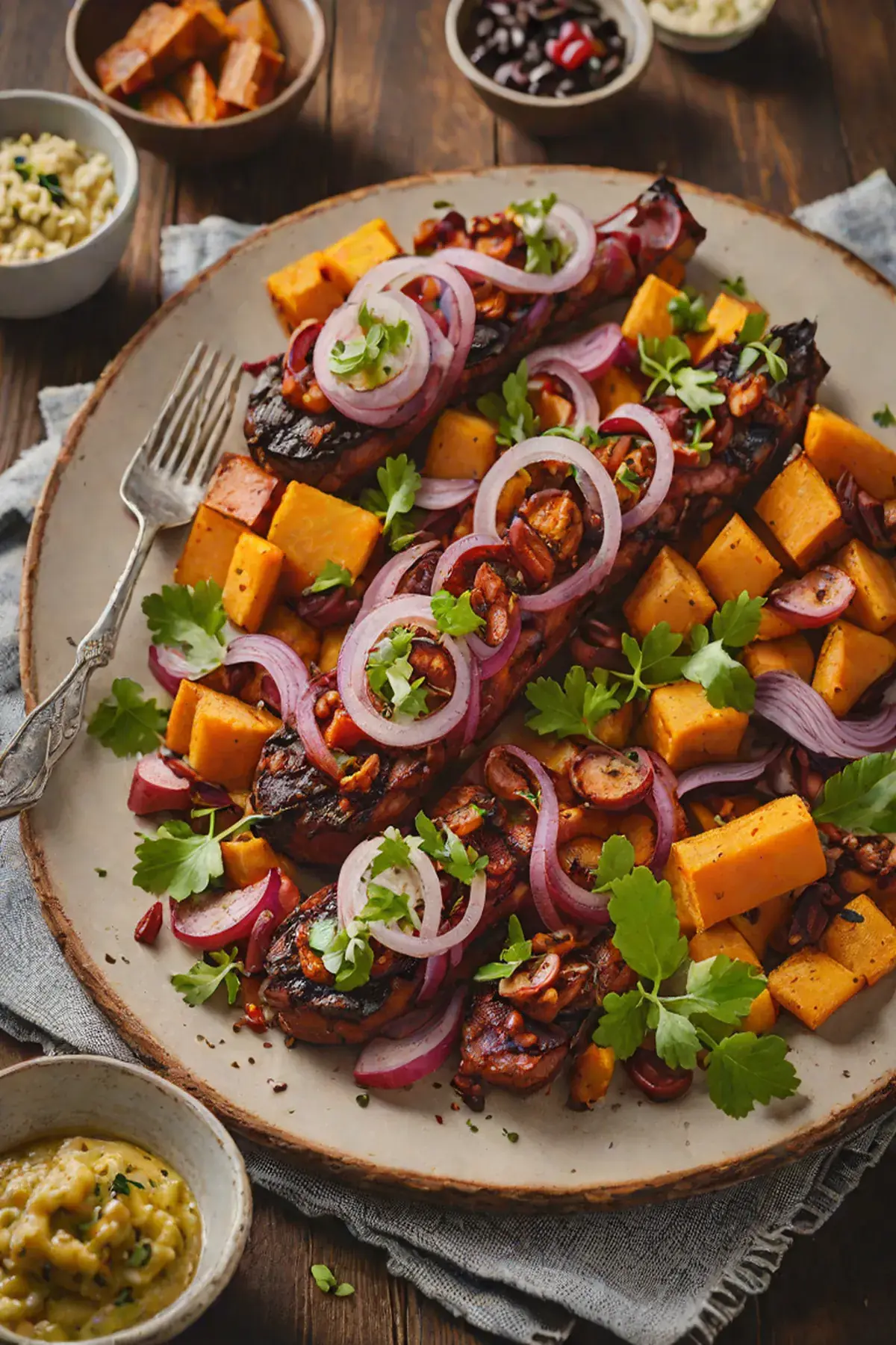 Roasted Chorizo with Sweet Potato and Charred Onions