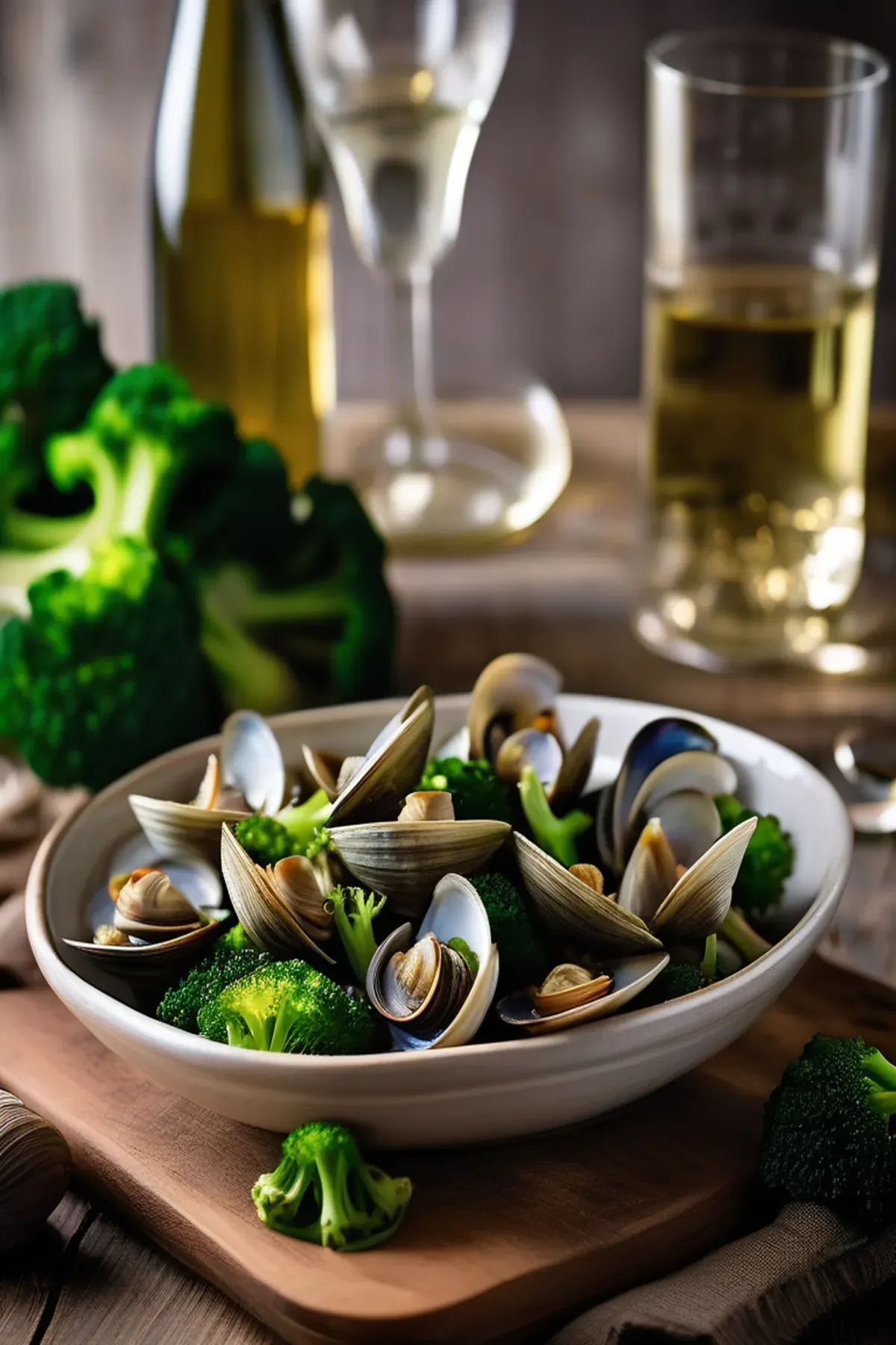 Succulent clams nestled alongside crispy roasted broccoli, finished with garlic, white wine, and a touch of lemon for a elegant yet simple seafood dish.