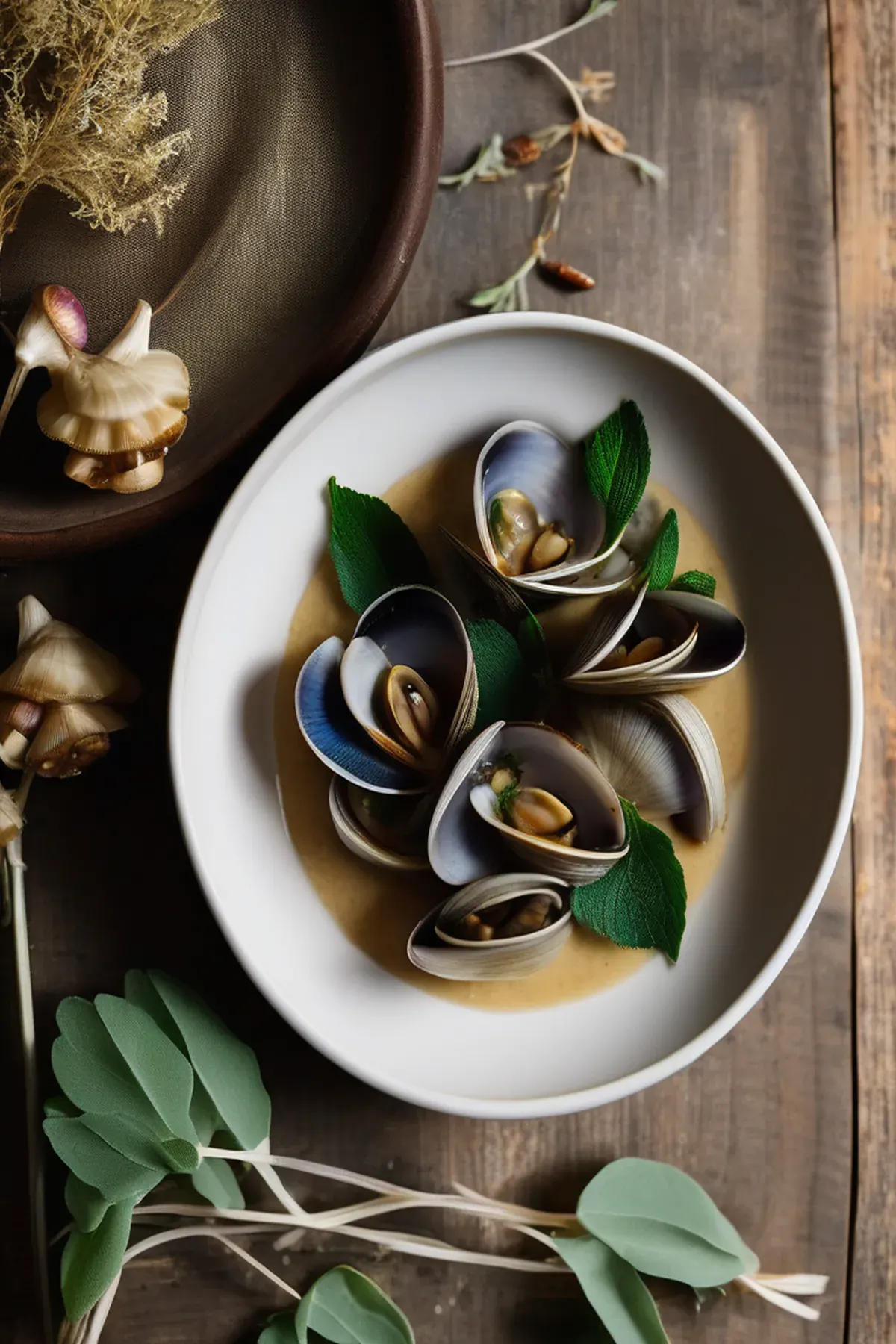 Roasted Clams with Parsnip Puree and Crispy Sage