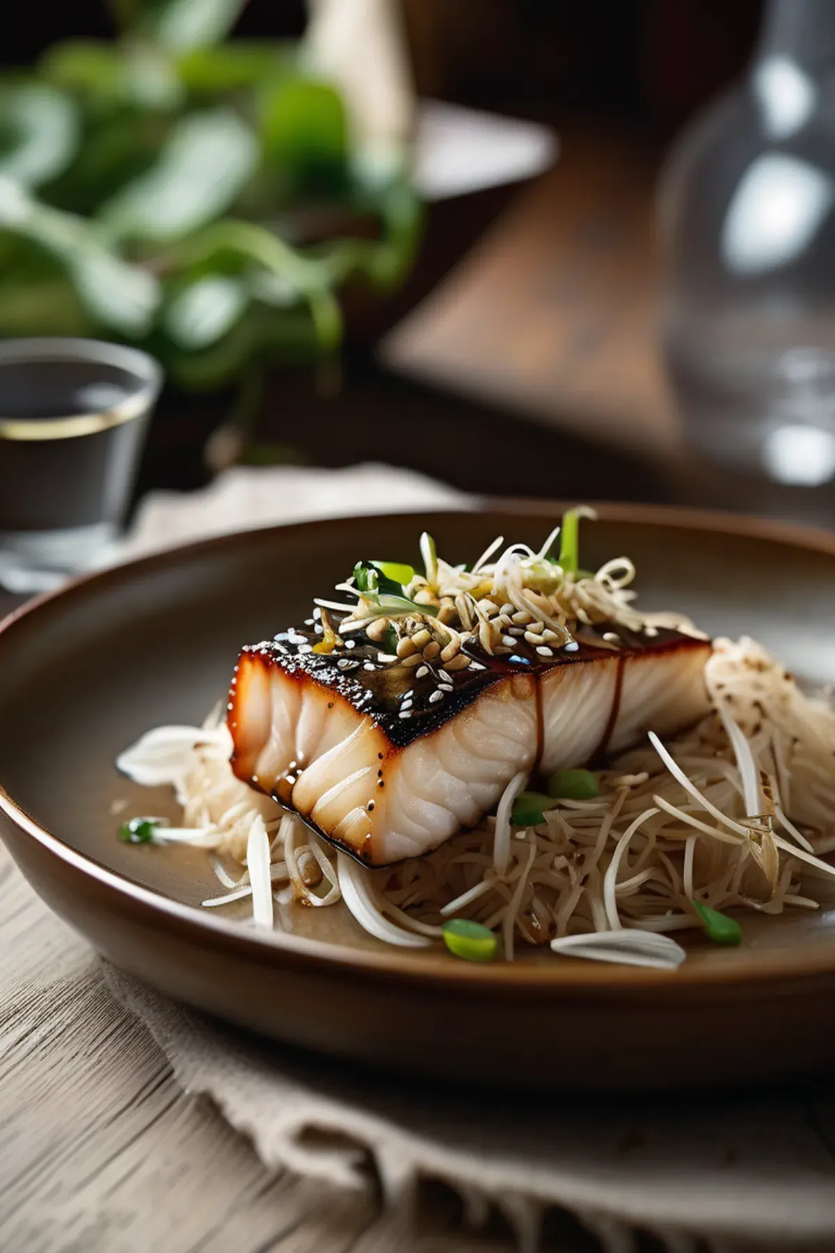 Roasted Cod with Bean Sprout and Ginger Glaze