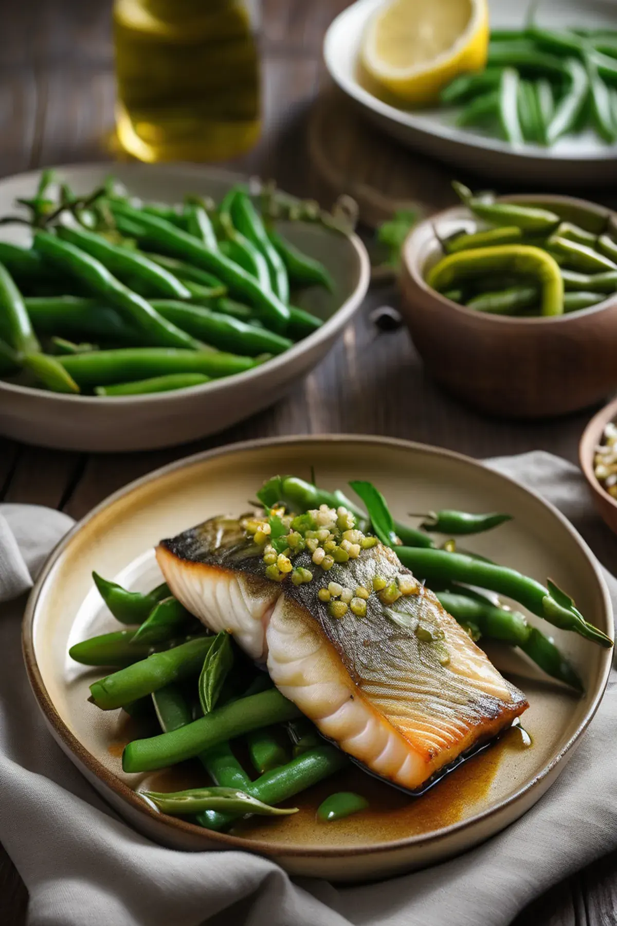 Delicate flaky cod fillets paired with crispy roasted green beans, finished with a fragrant lemon butter sauce and fresh herbs. A light yet satisfying weeknight dinner that comes together in under an hour.